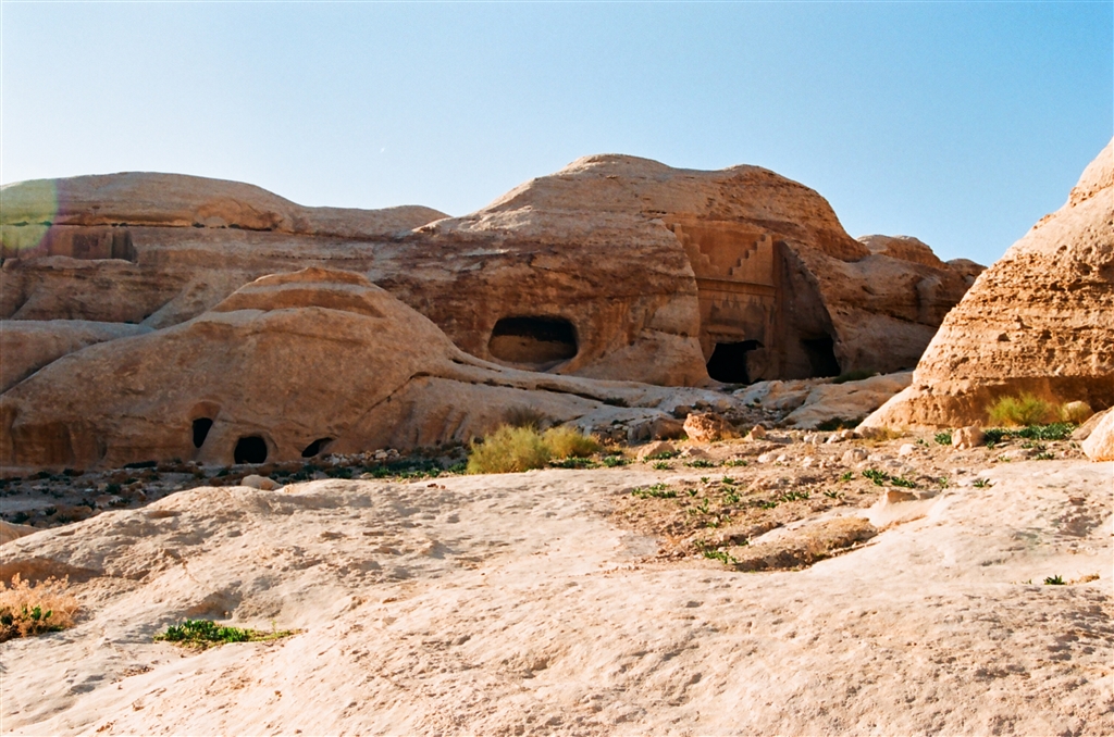 I became used to the light human hand prints on the way, and thus I was blown away when we reached the Al Khazmeh. There standing proudly and prominently, the city center had high pillars supporting a beautiful Romanesque façade, hewn and chiseled into the massive sandstone structure. It was the treasury of the city. In the middle an opening led into some kind of depth that was kept out of bounds to us. I was simply unprepared for this view and very much awed.