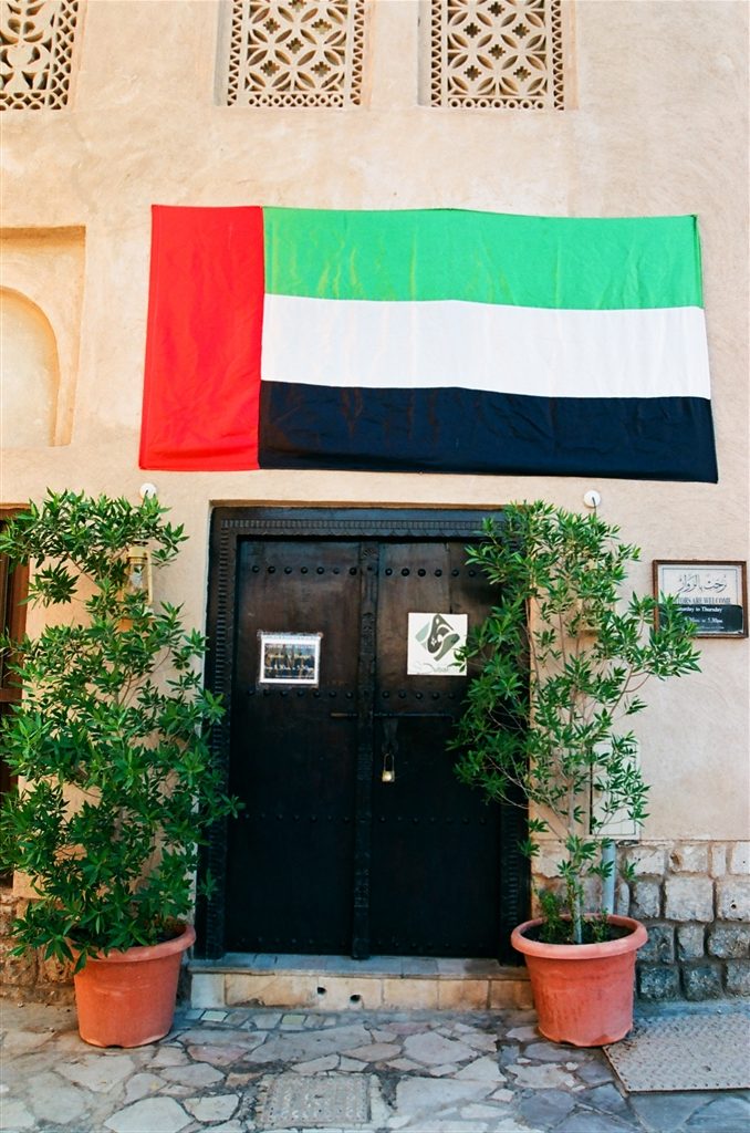 The national flag of the UAE features four colors. Red represents the passionate desert people. Green represents hope. White is purity. Black is the poverty before the oil was discovered in the UAE. Of course, now that oil was discovered and has brought enormous wealth upon Dubai in particular, the black no longer represents poverty but its very opposite. The flag was designed by a primary school student.