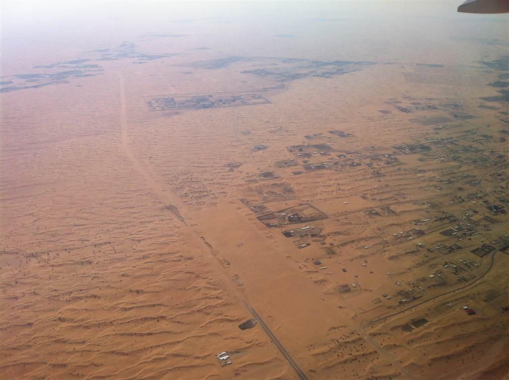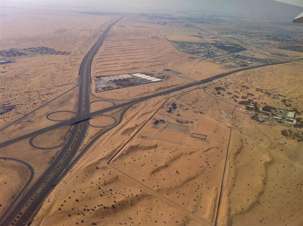 The wonderful aerial views of the United Arab Emirates greeted me in a variety of forms: first a coastline, then what seemed like ranges of barren hills. Finally it was all sands in vast and endless deserts. Swathes of sand make up the whole terrain with only an occasional tarmac road dividing it.