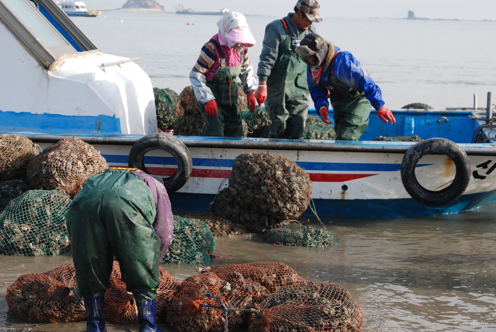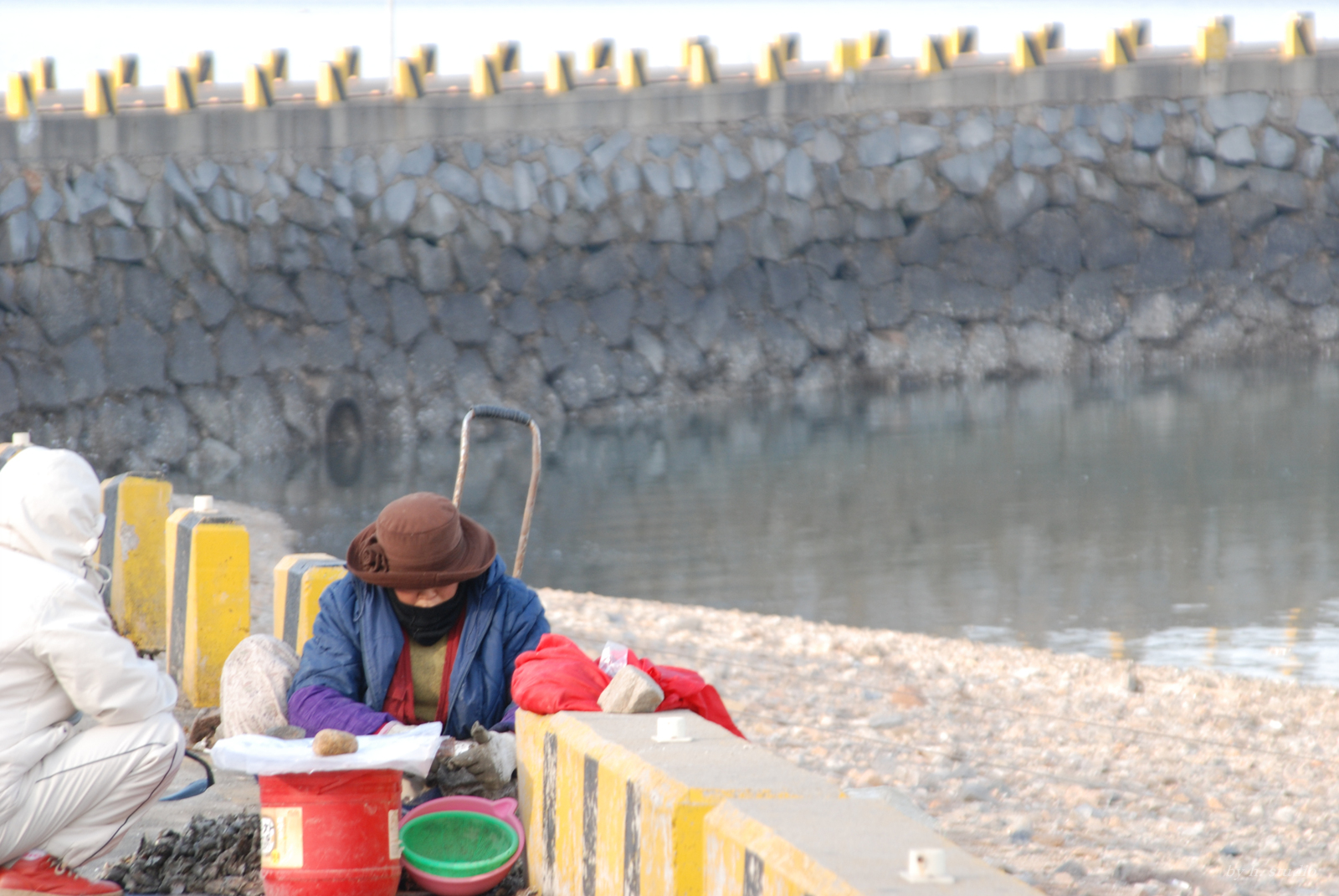 The long bridge to the Muiido wharf was very picturesque. There were many pleasing sights of a rural South Korea that gave me peace, sceneries that one would have to make a special effort to see in South Korea. It was a rustic and menial life that was tied to the ocean. I saw people working with their own hands with sea catch. They immersed half their body in that bitter cold water to dock their fishing boats, unloading the rewards of their hard work, of fish and harvested oysters. Women carried goods on top of their heads, slowly walking through that mile-long bridge.