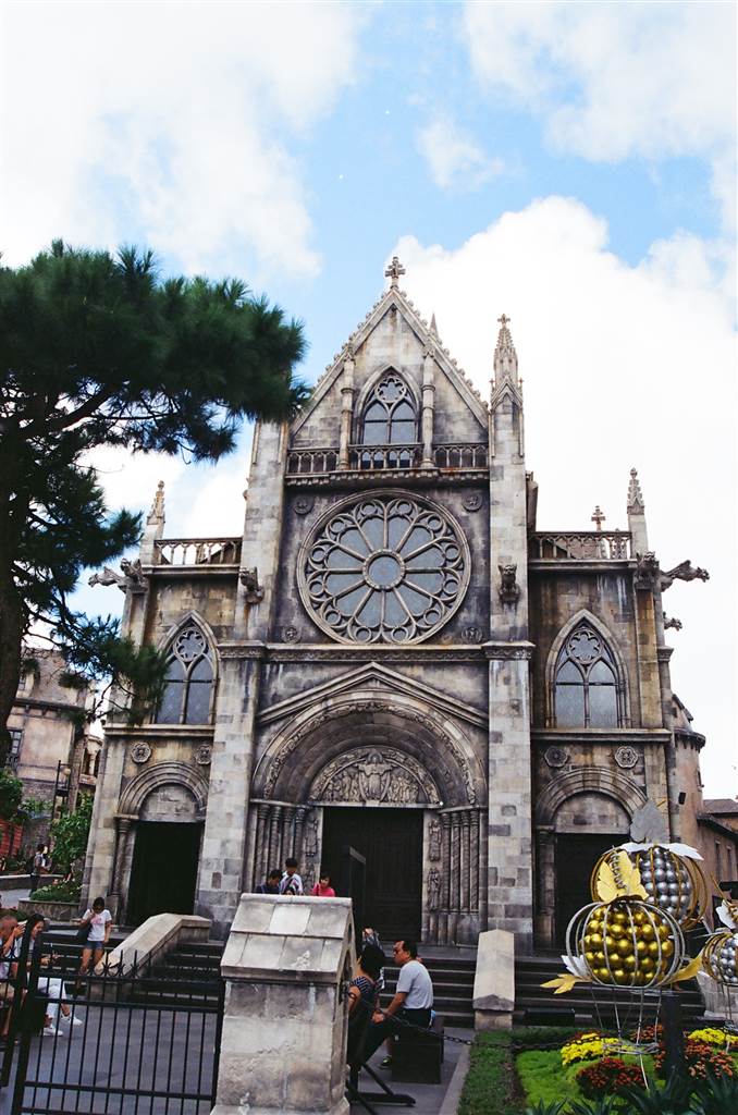 We missed the 19th century cellar though.  It was time to go up to the next level, where the fantasy park was.  I thought it would not be interesting, but the second level surprised me too.  There we saw the 19th century French Cathedral.  Really that alone worthed all the money that we paid to get in Ba Na Hills.  Besides the Cathedral, we could not tell which buildings in the French village were original.  The atmosphere there was carefully constructed to give a European vibe.  It worked, really.