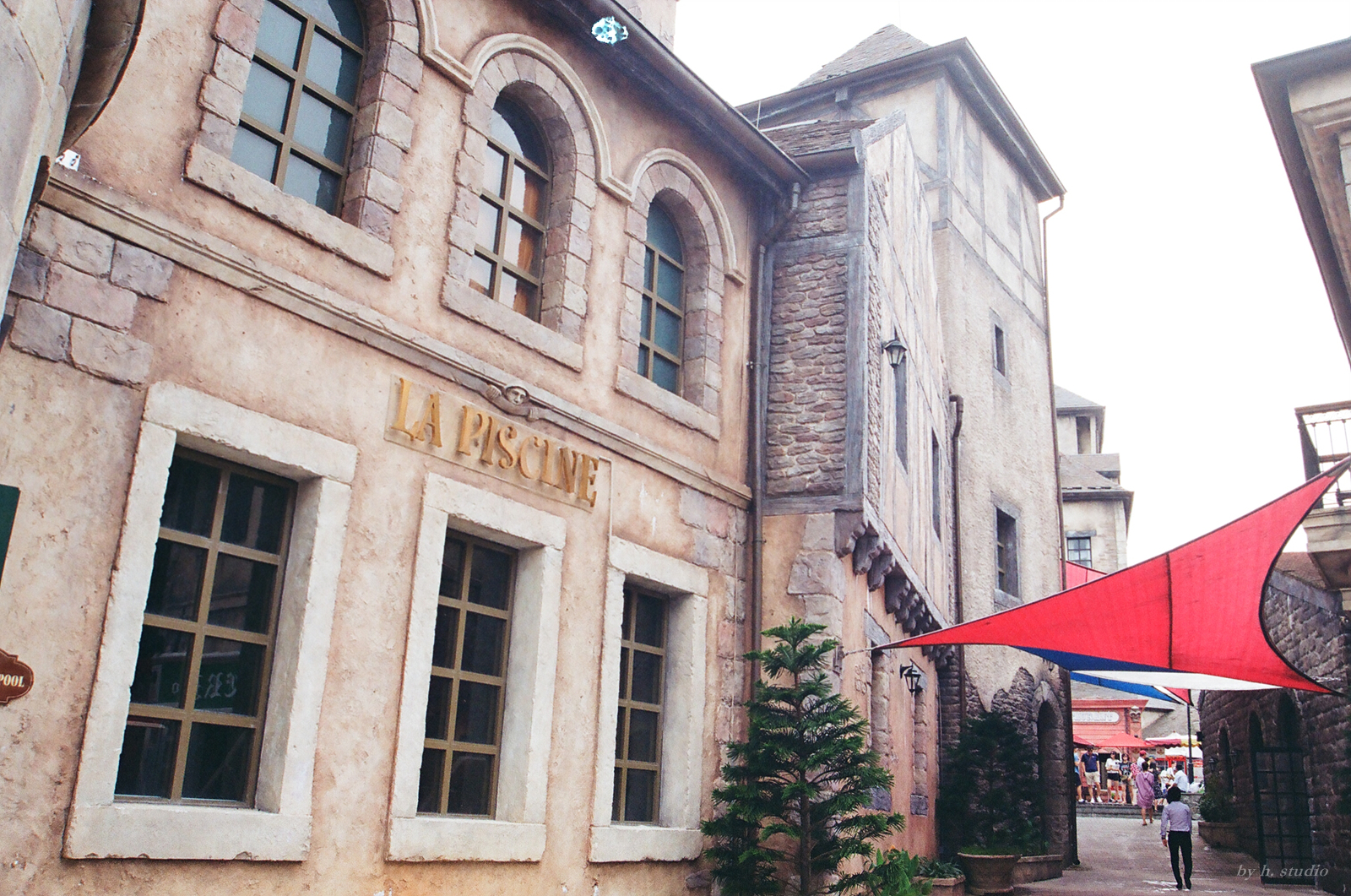 Having passed the French town, we came to a group of exclusively Asian-themed structures.  I liked the secular, zen-themed tea house the most.  It did feel like entering a whole different world altogether.  The scent of floral fragrance at the entrance seemed to signal to us another sense of being: calm, natural, minimalist, unlike the elaborate effort to “make it French” just a while back.