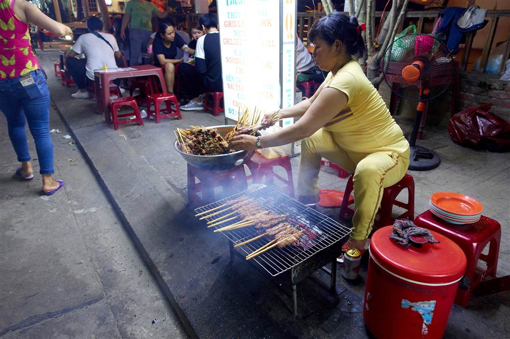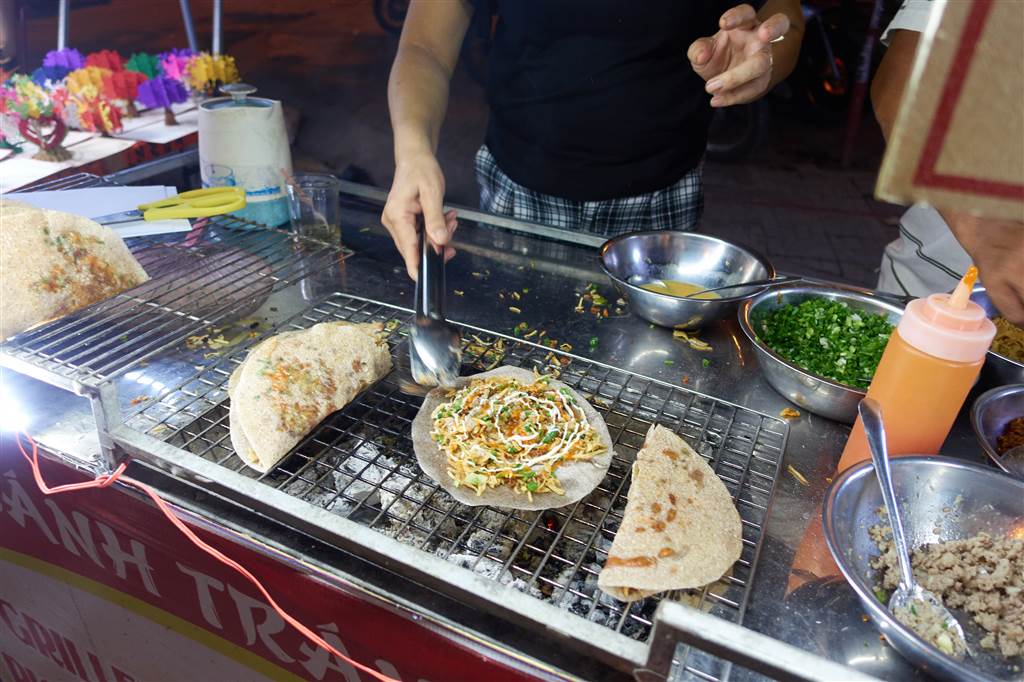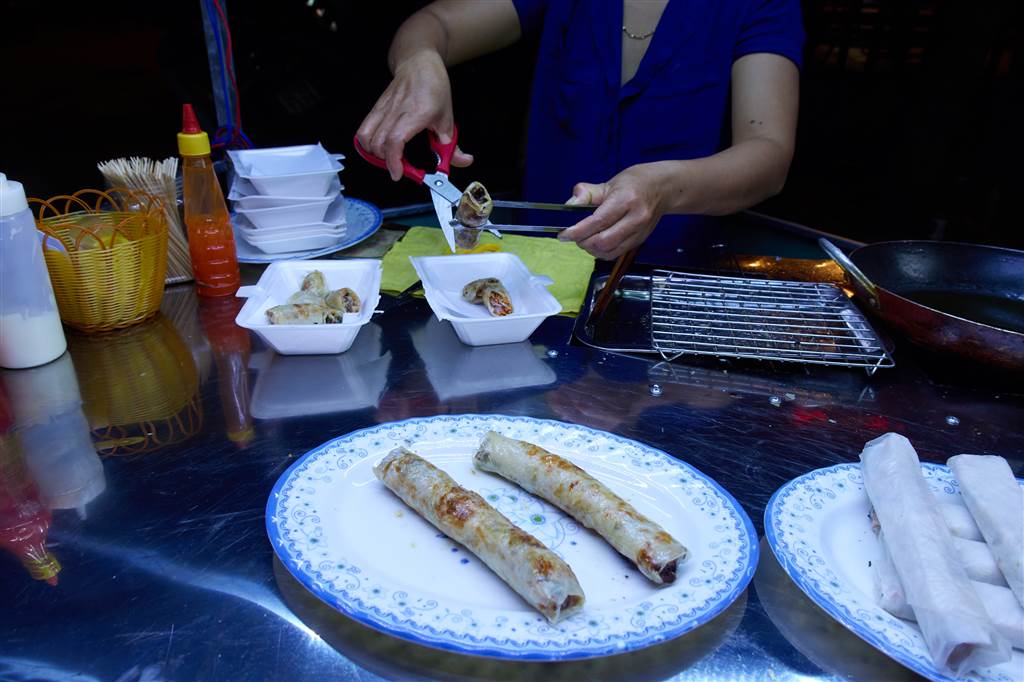 Heading right into the night market, we had skewered meat and foot-long Vietnamese spring rolls. We saw pancakes with minced meat and generous herbs. All very tempting but we had no more room in our tummies.
