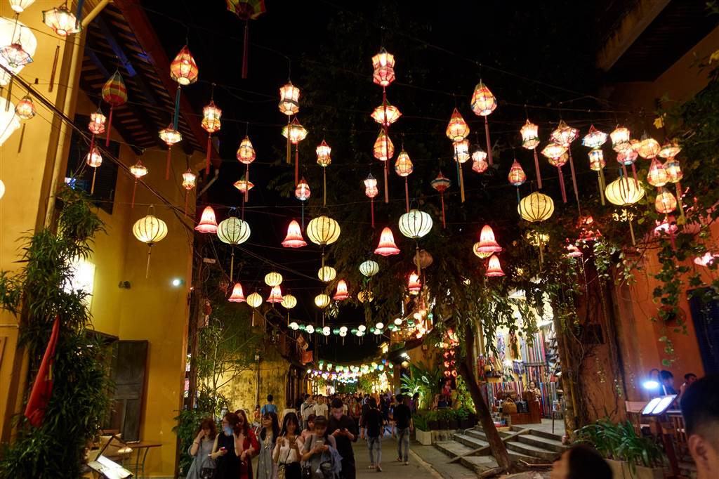 In the evening, we came back to Hoi An and found it bustling with festivities. The night market has opened. Music filled the air, food stalls lined the streets, and the colorful lanterns decorated the sky with the full moon above us.