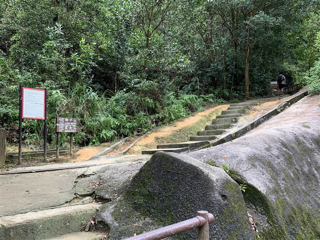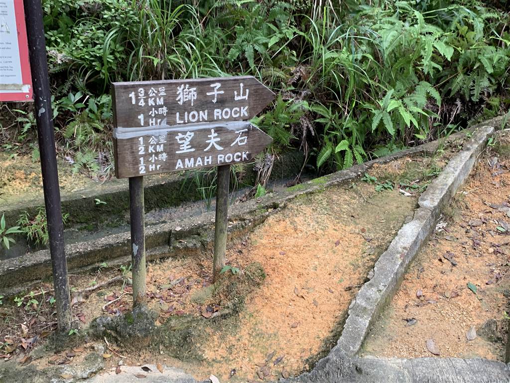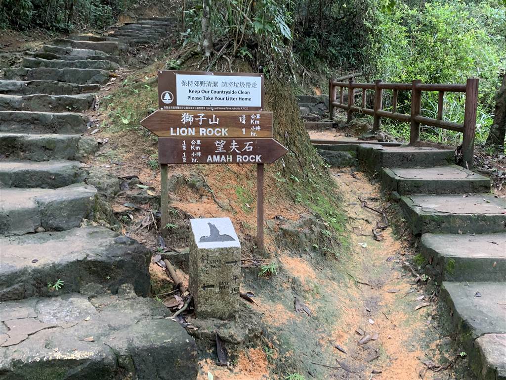 From the Hong Mui Kuk Barbeque Area, take the steps on the left and ascend. This section of the trail takes about 15 to 20 minutes. Once arriving at the aqueduct, look right ahead and you will see the sign for Amah Rock. The trail up to Amah Rock is before you. At the crossroad, head over the steps on your right, follow the sign for Amah Rock. The trail on the left will lead you to Lion Rock. The ascent to Amah Rock will take another 15 to 20 minutes, and you will cross one stream.