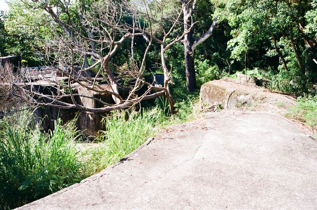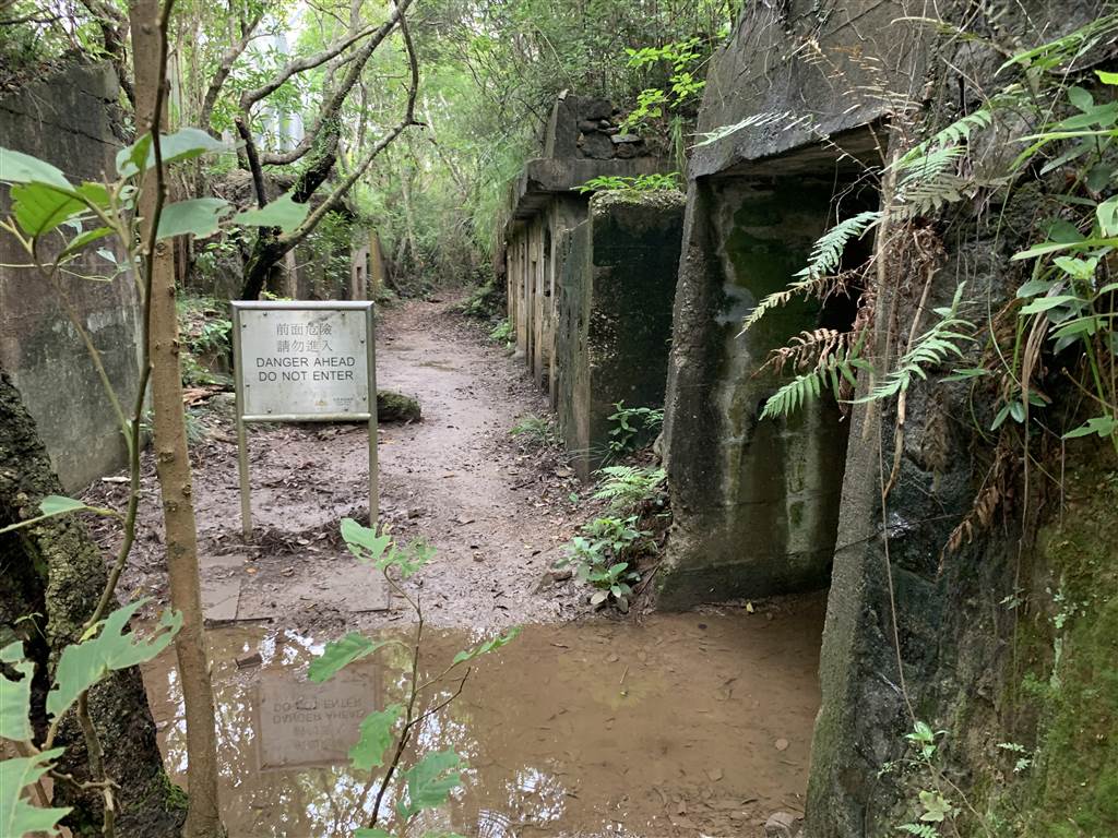 After a brief walk-around, I went further uphill and found even more structures in ruins.  There was a sign at one site barring tourists from going further.  Due to the rain, puddles of water has formed.  I would not have been able to pass through anyway.  The further I went around, the more eerie it was.  Overgrown trees hovered over me, their branches seemed to bear the memory of the only war that Hong Kong has seen in its short history.