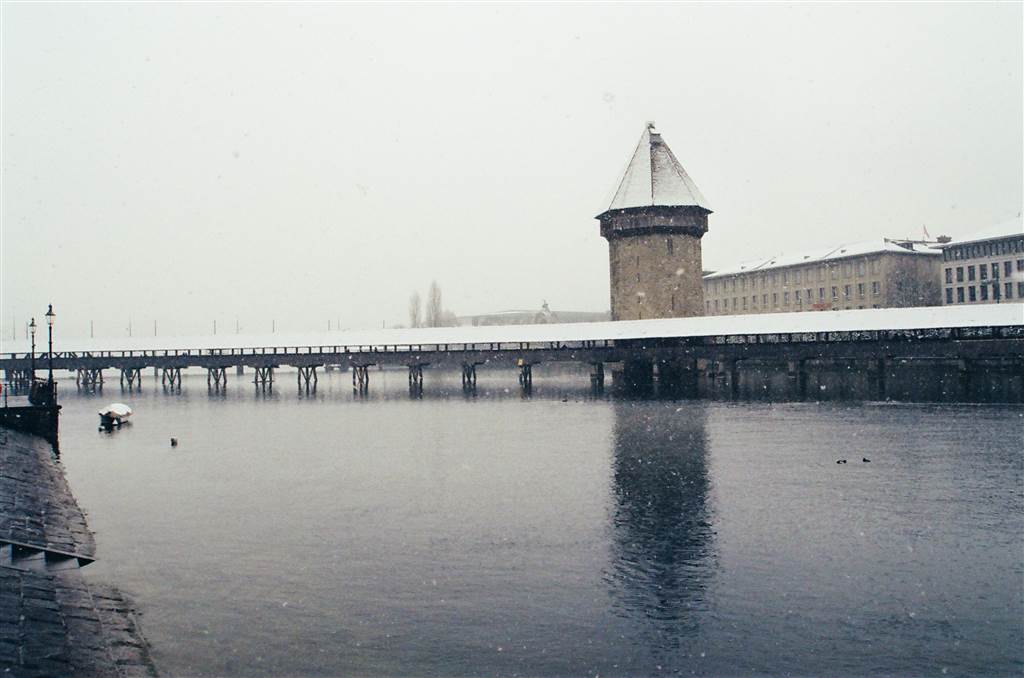 It was a warmly walk on the covered bridge.  Once having crossed to the other side of the river bank, I looked back and took in breathtaking views of the bridge as snow fell.  Yes, the sneezing continued.  Although with runny eyes and nose I thought the decision to visit Luzern was right.