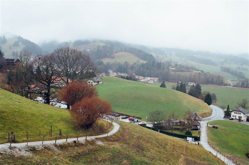 Gruyeres (pronounced gree-EYRE) is a town about an hour northeast of Lausanne. It is famous for its cheese, made at La Maison Du Gruyeres.