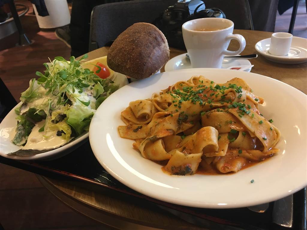 I must have passed by the Weggisgasse, and I found a restaurant. A pull-up showing a picture of tomato with tagliatelle came into view. This is it!