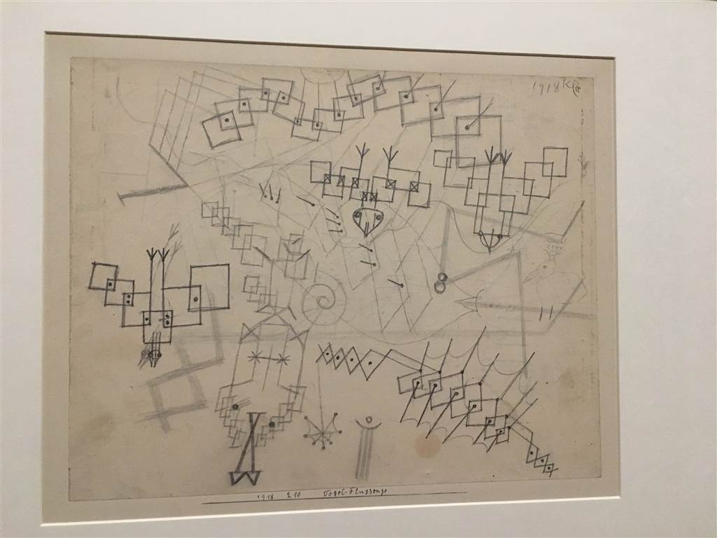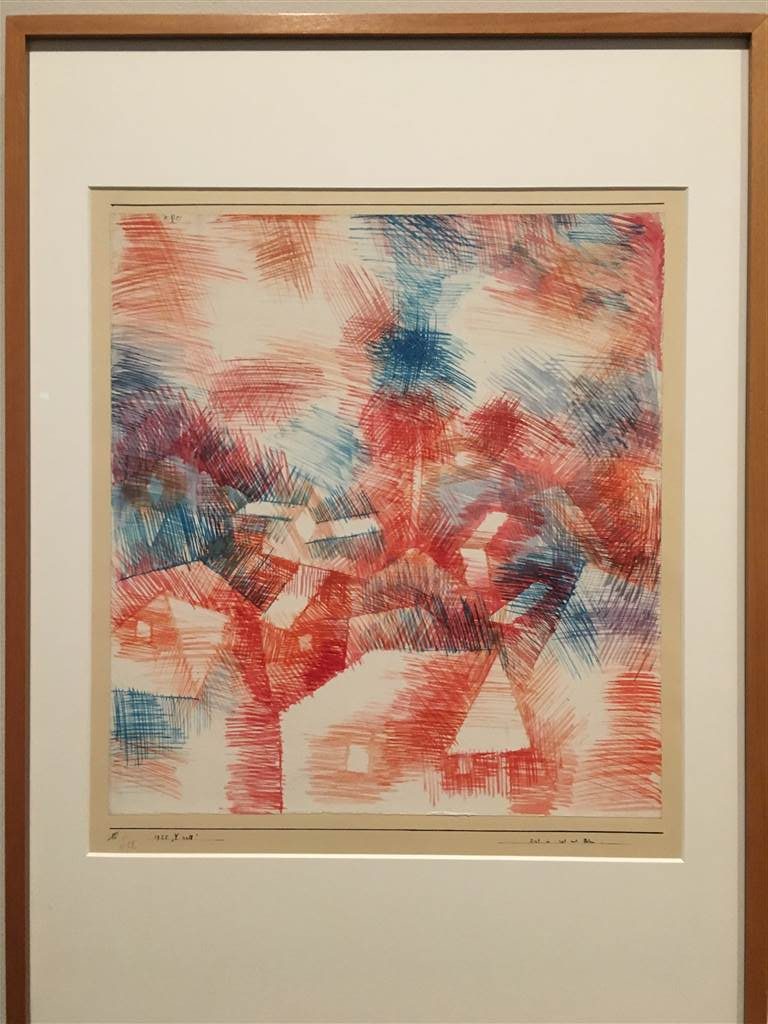 This exhibition that I saw focused on Paul Klee in WWI.  He was fighting on the German lines then, though spared of the frontline battles.  As he was mostly sitting behind his desk in the air fields, he had time to develop his art further.  Some of the artwork clearly shows inspiration from the instruments of war, mostly in his references to aero-planes in his drawings.  The artwork was more interesting than beautiful, however; though, as always, I did enjoy the first-hand descriptions of war in the diaries displayed.