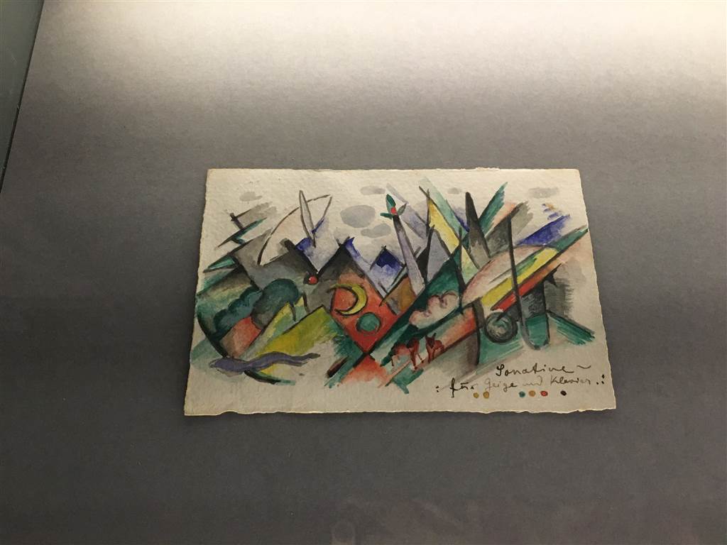 Paul Klee (1879-1940) was born near Bern in 1879 to a German father and a Swiss mother.  In his early years as an artist he was established as the Munich avant-garde, and a member of the artist group “Der Blaue Reiter” (Blue Rider).  He made his breakthrough after a visit to Tunisia with August Macke and Louuis Moilliet.  Thereon he developed his own style, mainly in abstract drawings and paintings.  He also explored new materials and creative media for his art.  During WWI, the period in his life that was on exhibit when I visited, Paul Klee established a cult following with his art.