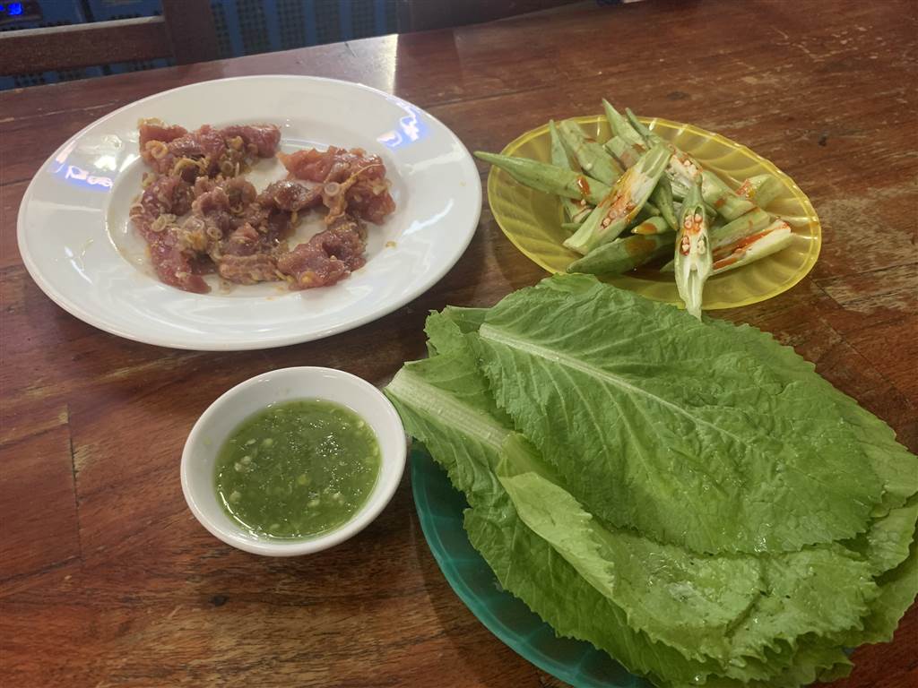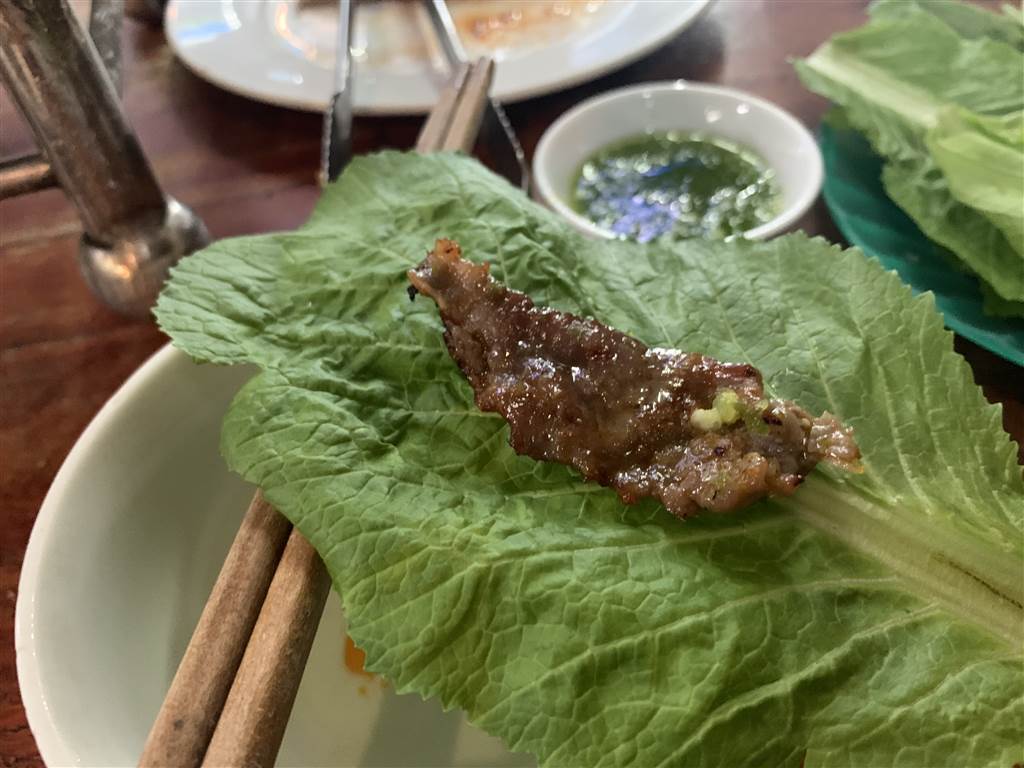 The waitress there knew a little bit of Cantonese. She was patient in showing me how to pronounce the food in Vietnamese. Needless to say, the food on other diners’ tables was the best proof of this restaurant’s repute. Yet the warmth of its staff was a pleasant surprise. I went all out as a result: beef, pork, squid, okra, wok-fried veggies, you name it, I had it. They came in small portions with sauces, condiments, salad, and generous servings of leaf wraps.