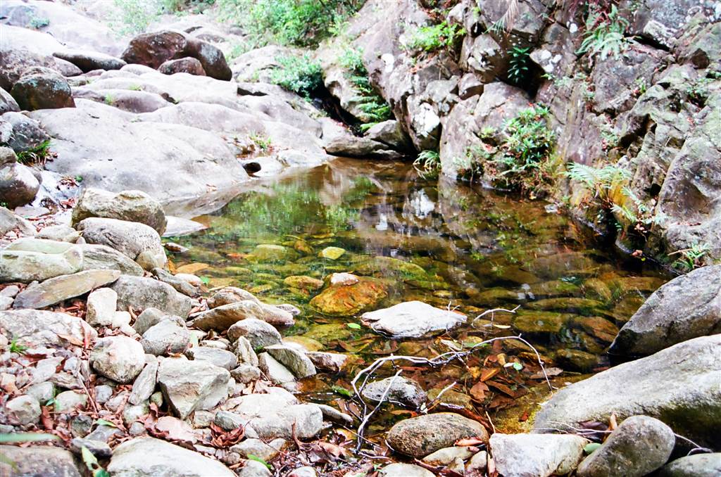 On Friday morning, I headed out again, and as I passed through the last village property before entering the Ping Ka Stream, the owner saw me. “Didn’t you come yesterday?” I frankly told him that I was too scared to climb the day before. “Here’s what you have to do,” he said in an expert-like manner, “stay on your left on the cliff. Once you climb up you will see the pool. Then when you are done, you head to rocks on your right and climb up further more. Keep to your right, and you will see four inlaid tiles on the ground. That is an indication that you are on the right track. Keep going on your right, and follow the ribbons on the trees. You will have to climb further up to reach the Management Center up the mountain, then head back on descent and loop back to your car in the village. Be very careful, it rained last night and it might be slippery, and plus you are going alone.”