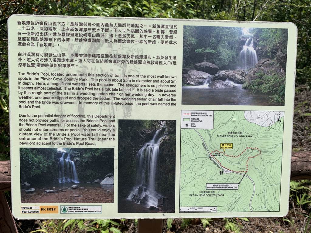 Legend has it that a bride was carried through the pool in a wedding sedan chair on a rainy day.  One of the carriers slipped and fell.  The whole sedan chair fell into the pool.  As a result the bride drowned.  To remember this ill-fated bride, the villagers named this pool Bride’s Pool.  As the legend is relevant to us today, the pool is believed to be haunted still.