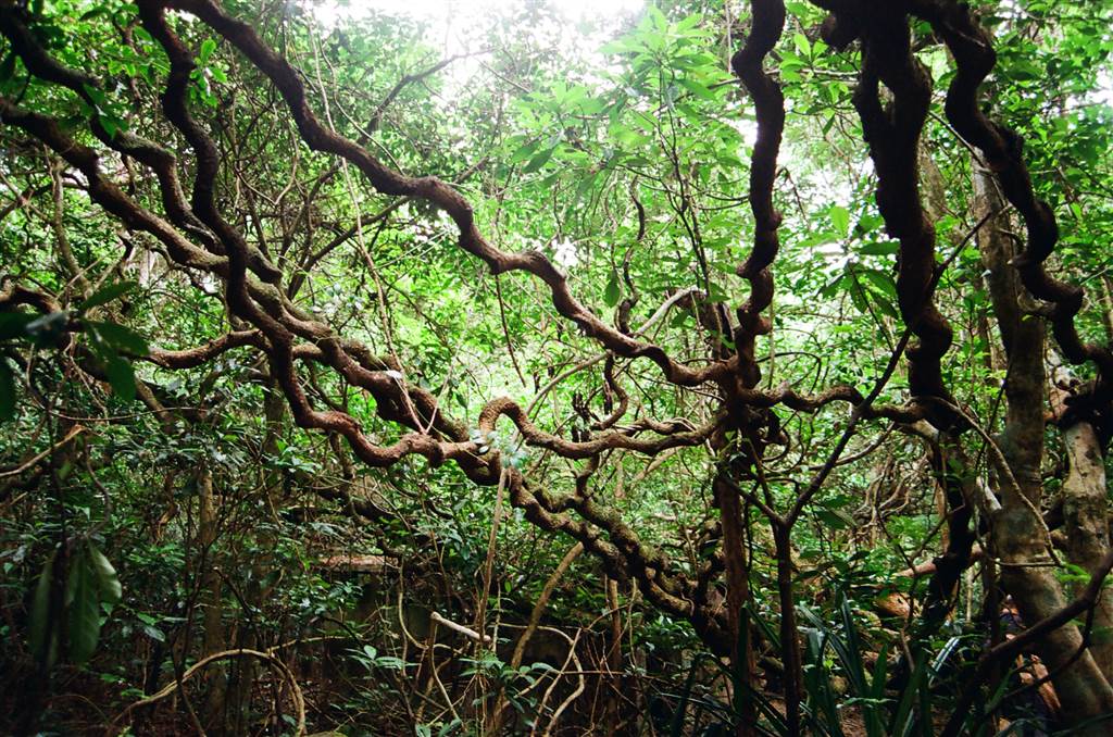 I call these giant twines because I have no botanical knowledge. Apparently, this tree has the official name of Entada phaseoloides, in English colloquially as Giant Bean. Their fruits grow in pods.