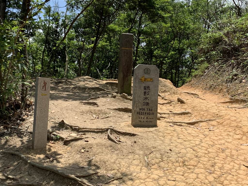 The upward stairs took about 15 minutes, then the trail eased into a nice stroll.  I went on for another 15 minutes to arrive at the sign post for Hok Tau Reservoir.