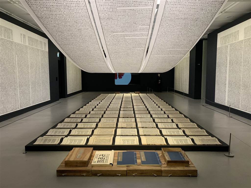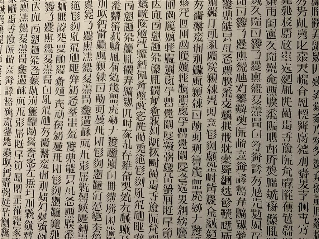 When the viewer comes closer to the artwork, it would take a second or two to realize that these words make absolute no sense, despite their appearance.  The message then was much more provocative.  Modern readers of Chinese might stay away from these traditional bounded volumes anyway because even in real Chinese they are difficult to understand.  In that sense, seeing this artwork elicits the exact same feeling when we opens up an ancient scroll.  Even with real Chinese words, these scrolls are unreadable anyway.