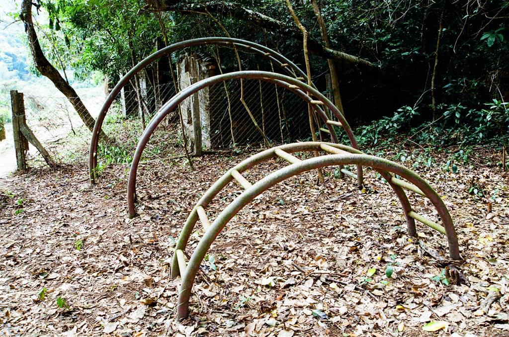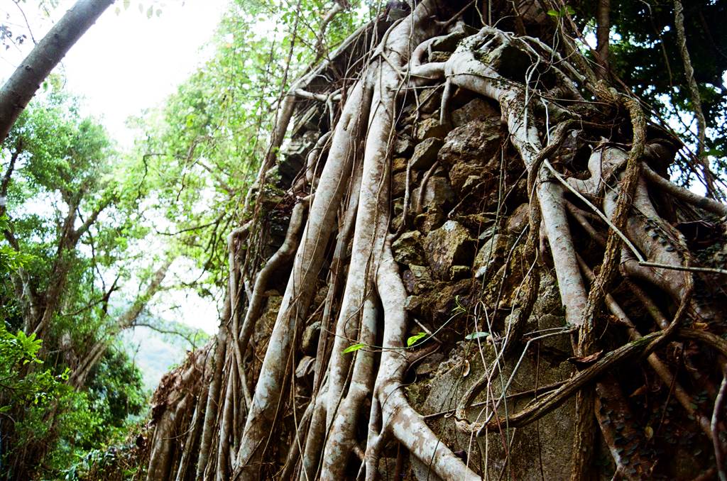 Exit the Yung Shue Au Village on this route, you will cross a stream and soon pass by some eerie sceneries: