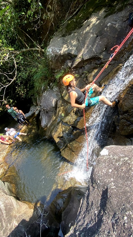 We conducted this trial abseil on relatively dry rocks. At the real abseiling sessions, we would be coming down on rocks that are consistently washed by the stream. We did abseil down a few waterfalls, in fact.
