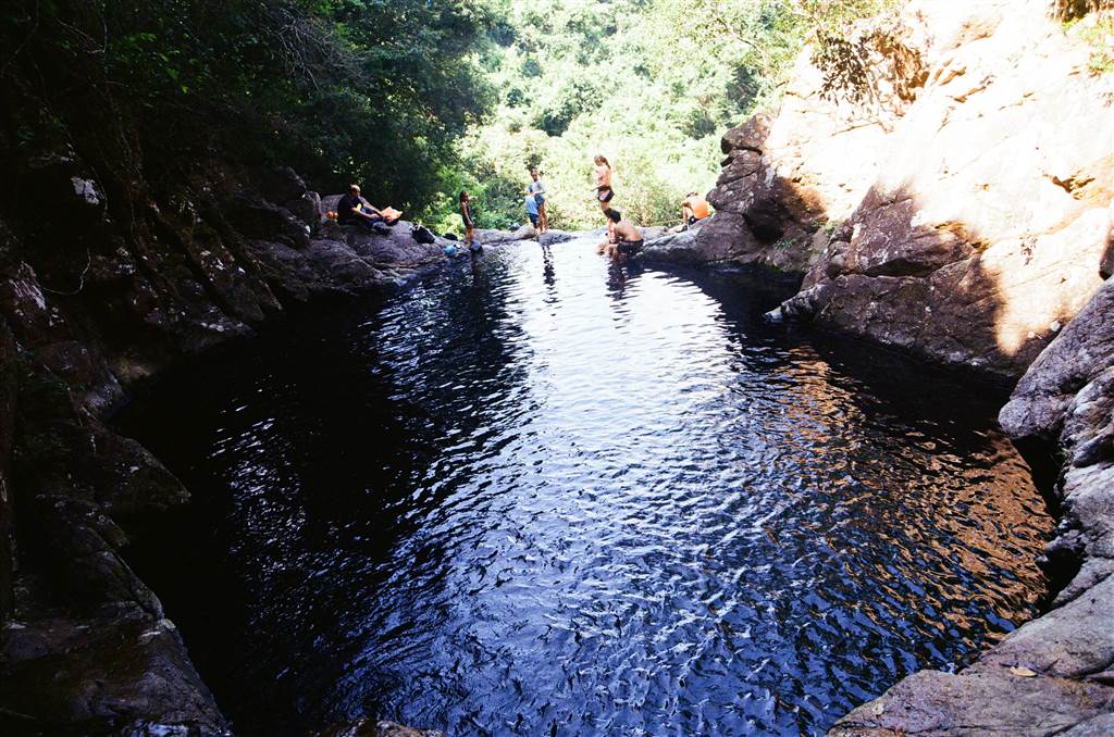 Then came an even more difficult task. The next descent was to jump off a 5-6 meter cliff. It turned out to present a serious problem for me, by then a very scared soul. When I dived, I felt my heart popping out before I just entered the water. As a result, when I went into the water, I could not coordinate my breathing. Also, the shoes that I was wearing did not help with the swimming. It was nothing like swimming in a swimming pool, and no matter how much I used my legs I was not heading forward in the water. I could not get myself to swim back to the edge of this pool, and I could not coordinate breathing.