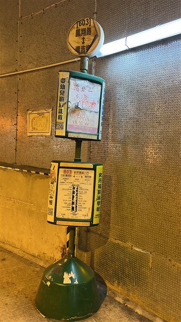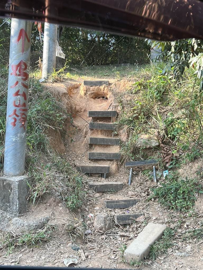 Photos: Left shows minibus 603 to drop off at Fung Kat Heung. Right: This is the set of stairs up Kai Kung Leng, on Fung Kat Heung Road, note the red paint saying Kai Kung Leng in Chinese on the lightpole.