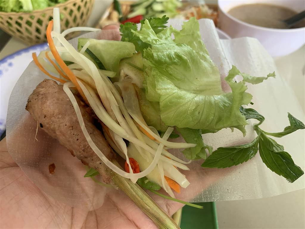 Although the Banh Khoai was really the main attraction at Banh Khoai Hong Mai, I also ordered Nem Lui.  The two happy pancakes would not keep me full.  My first exposure to Nem Lui was probably during my last Vietnam trip in Danang and Hoi An.  This Nem Lui Hue was, purportedly, better than the nem lui anywhere else.