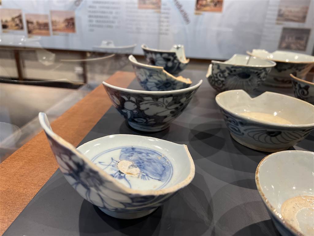 Photographs: these are the porcelain shards found at the archaeological sites.  Apparently, there were heaps of them.