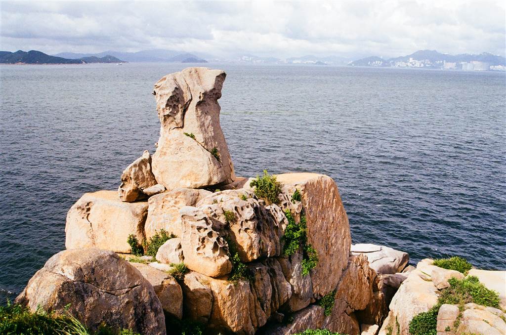 The Mini Great Wall offers a scenic excursion on the southeastern coast of Cheung Chau.  There are 16 named rocks on this scenic route.  Roughly from north to south: the Loaf Rock, the Rock of the Ringing Bell, the Eagle Rock, Fa Peng (vase), Rock of the Serpent, Goat Rock, Human Head Rock, Rock of the Sleeping Crane, Rock of the Skull, Elephant Rock, Rodent Rock, Rock of the Sleeping Cat, Yuk Saai Shek (the Rock of the Imperial Seal), Camel Rock, Zombie Rock, Tortoise Rock.