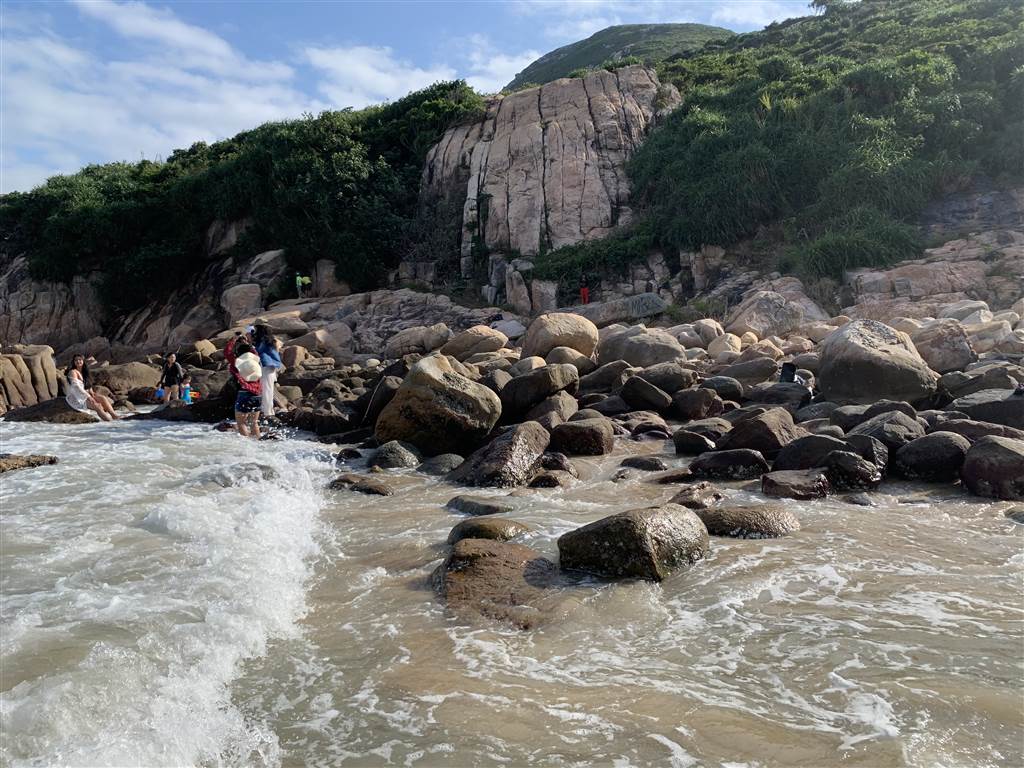 The beach overlooks a petite island not far away and the view of the island was very pleasing to me. It is named Ng Fun Chau. An online search shows people scaling this uninhabited island for an adventurous day. The things to see there are rocks and eroded caves.