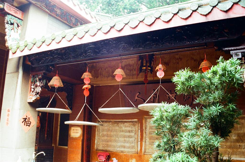 First of all, no one can miss the beautiful wooden plaque right at the entrance.  The name of the temple in gold sets against a red background.  This color combination really accentuates the words.  The red, blue and gold theme conveys a brilliance and liveliness unusual for the temples of Hong Kong.