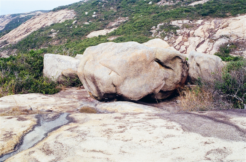 The surfaces of the granite at Po Toi Island are coarse and medium- to fine- grained. “On the coast the granite forms cliffs of pink to light brown, slightly to moderately weathered rock.” Indeed, the spectacular rocks on the hill of Ngong Chong are the results of erosion.
