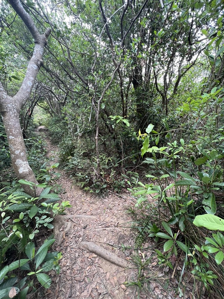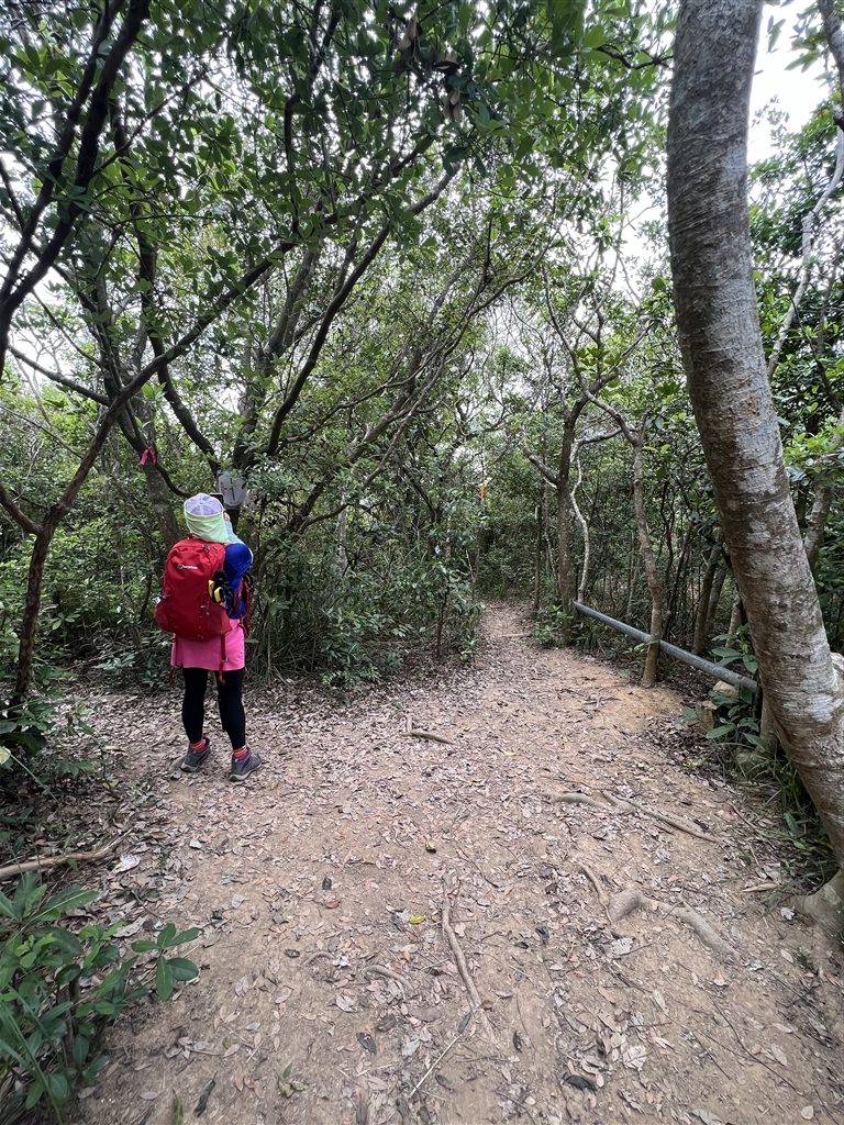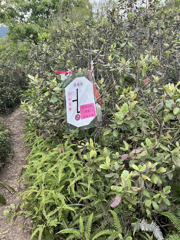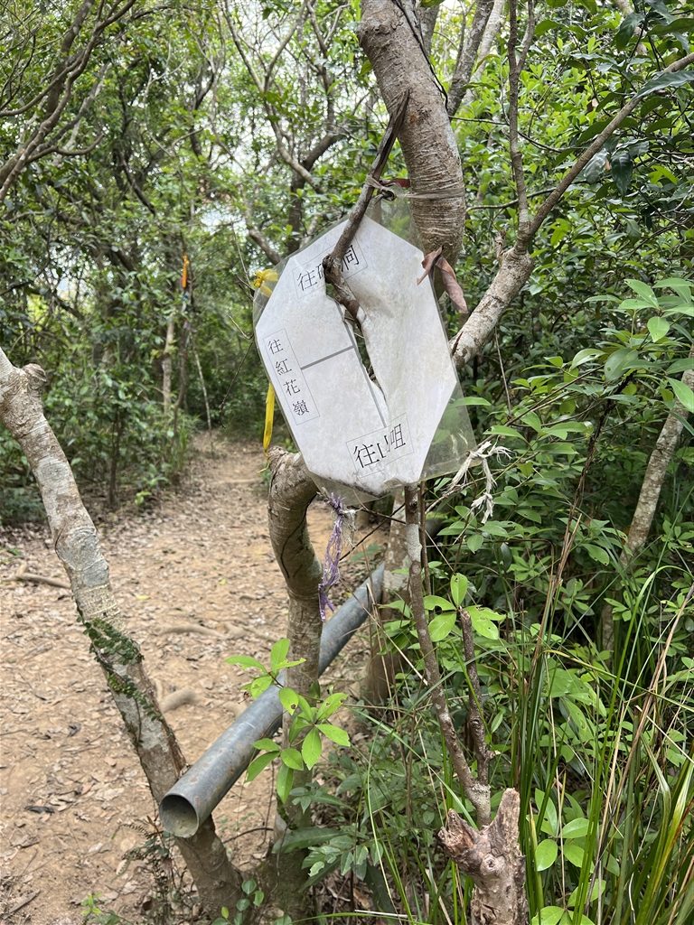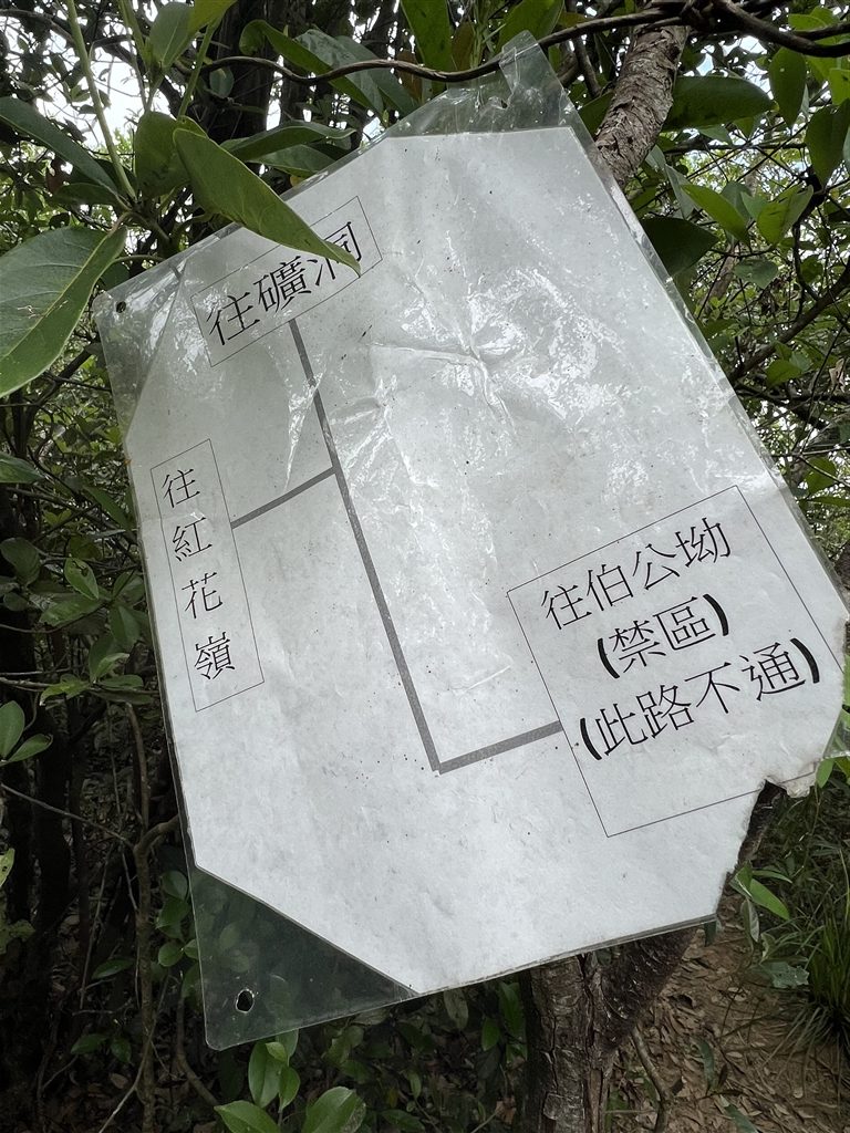 After climbing a 300m altitude from the lead mine of Lin Ma Hang, you will then be continuing on an eastward hike to Shan Tsui Tsuen Village.  There are signs that previous hikers have posted along the way.  Watch out for the sign that says Pak Kung Au at this crossroads.