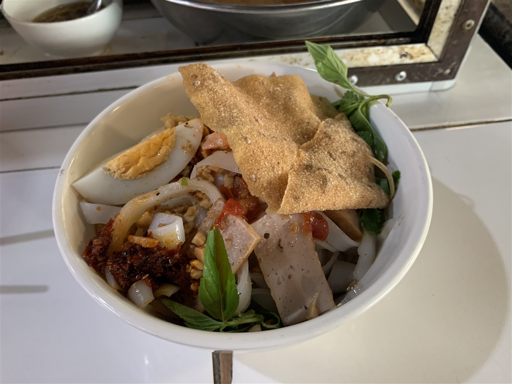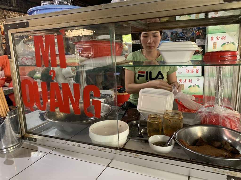 It was still rather early in the morning so the food that I was looking for, a local dish called Banh Bot Loc, probably did not open. I sat down at a noodle stall and had a wonderful mi quang bowl. The owner spoke some English, and usually the least that most Vietnamese can do is “where you from.” In their language they pronounce China as “Cheena,” so I said, “Hong Kong, Cheena” to her.