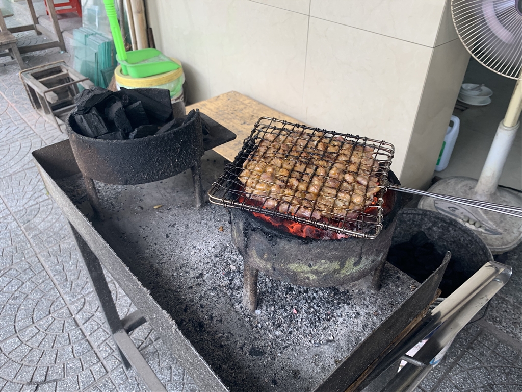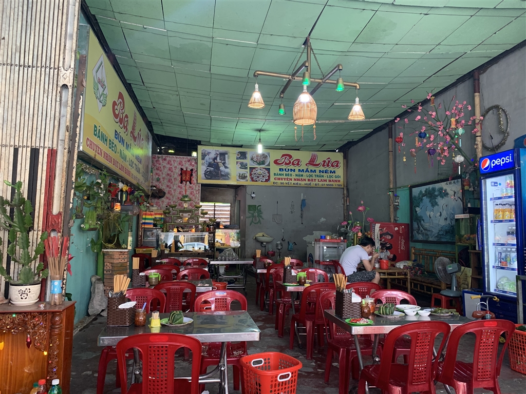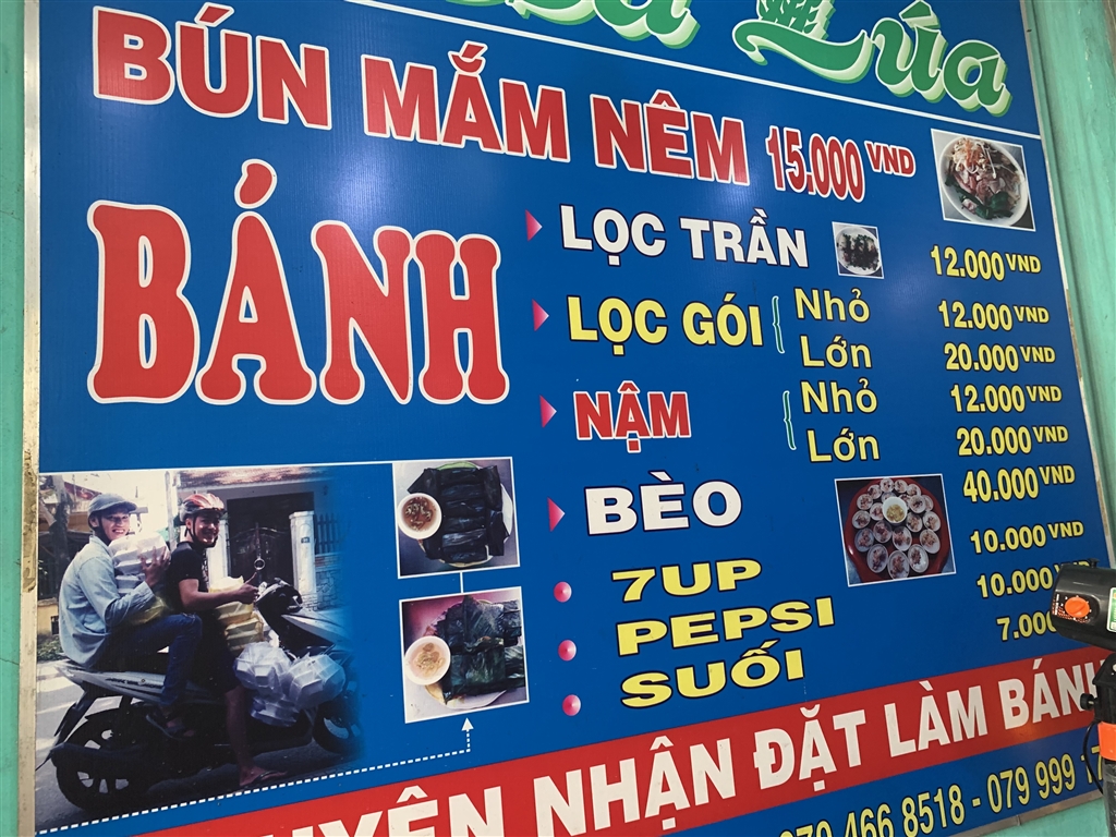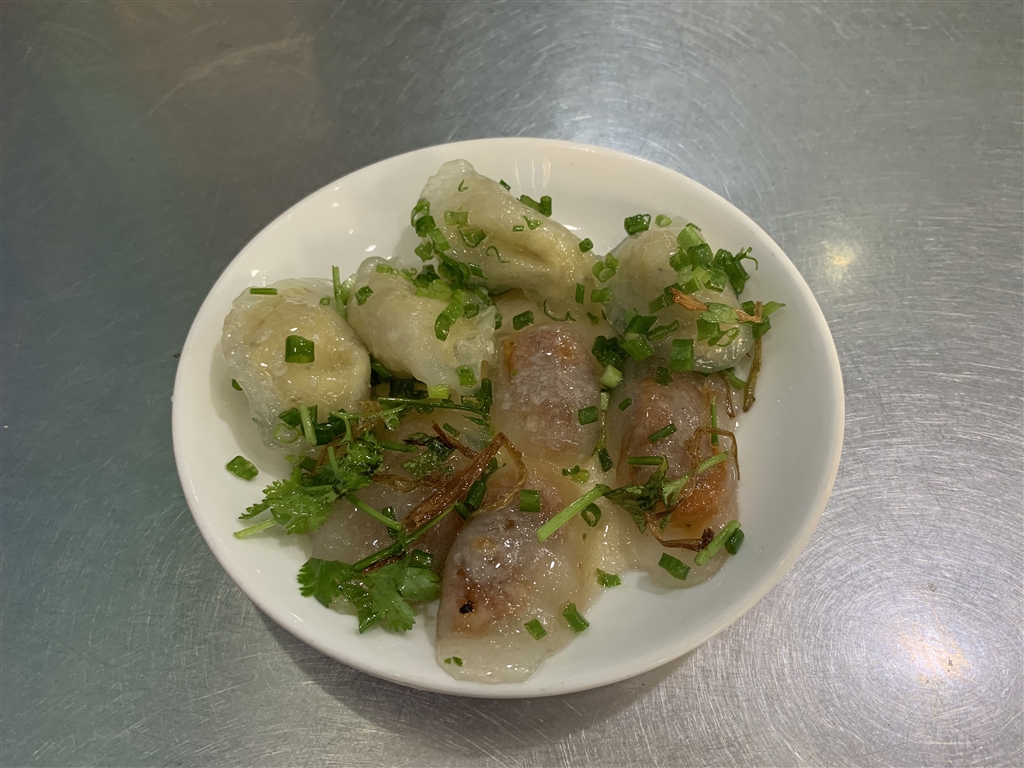 I figured that, to catch a grab bike, I would have to head on over to the Citadel. Close to the Citadel I came across another very local restaurant and ordered some loc tran. There were two kinds of clear-wrapped dumplings in the dish. One was a paste with a hint of sweetness. It might have been mung bean paste. The other was a dried sausage, clearly savory. The fish sauce beneath really augmented the flavors of the dumplings. The chewy and gluey texture reminded me a lot of the crystal dumplings in the restaurants of Hong Kong, but with a Southeast Asian character. I did like these much more so than the crystal dumplings in Hong Kong.