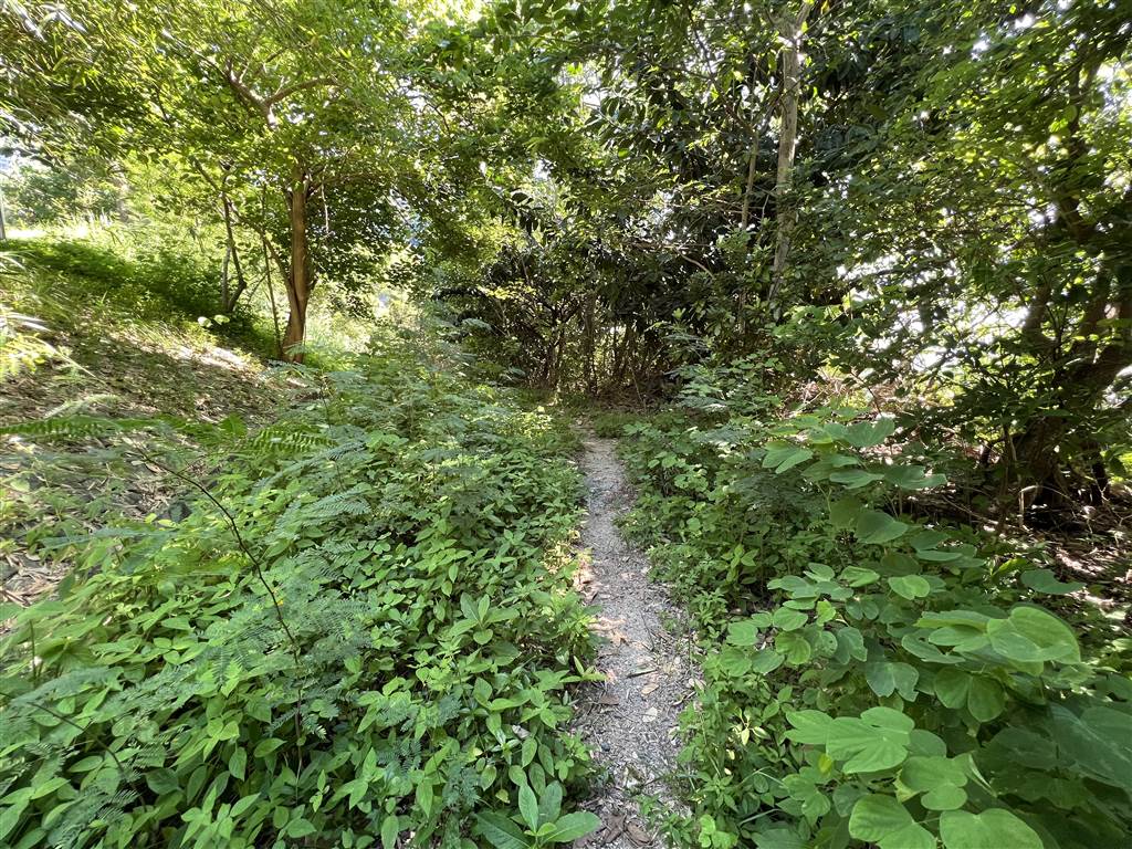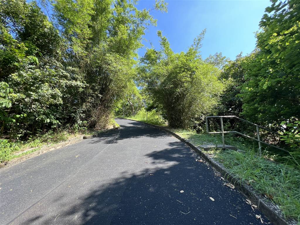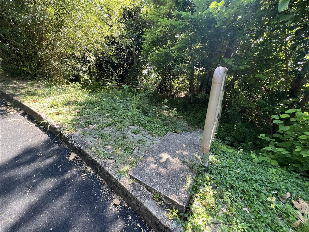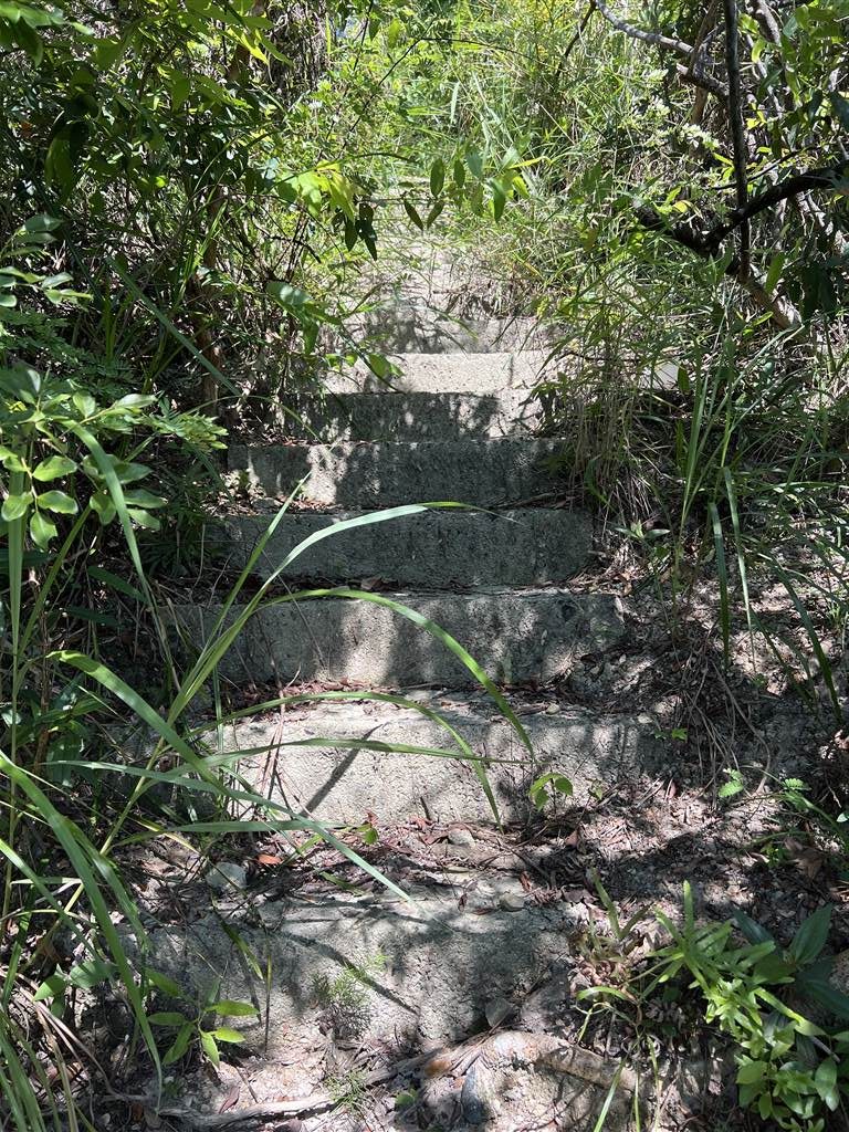 Let’s first take the two nearby sites in the Upper and Lower Aberdeen Battery. Get off at the South Horizons MTR Station Exit C.  On the street level, pass by the bus terminus and head onto Lee Nam Road.  On Lee Lam Road, cross the street and turn left. Keep walking until you see this opening on your right, with a metal bar that prevents vehicular traffic. This is the way to Siu Yuk Kwai Shan. Head up the slope for about 10 minutes.