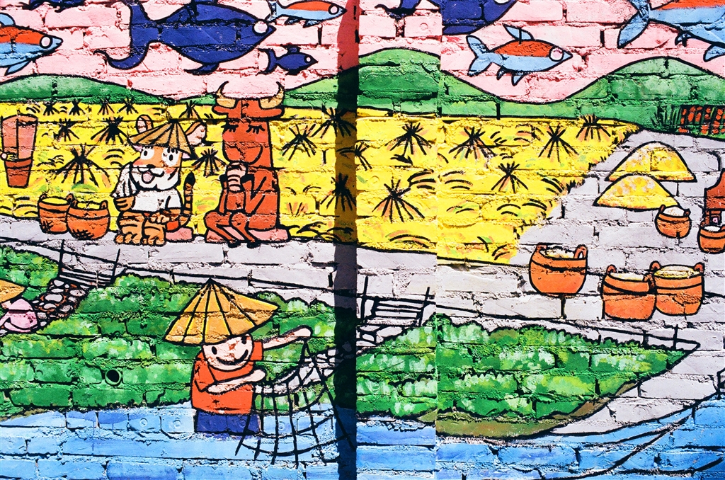 The villagers think of the Colorful Old Well as a main attraction in the village. With help from the Lutheran Church Hong Kong Synod and volunteers, the villagers built a new pathway to the well. They also put up a very colorful sign. This is perhaps the best illustrated site in the village. The house next to this pathway has a mural painting too.