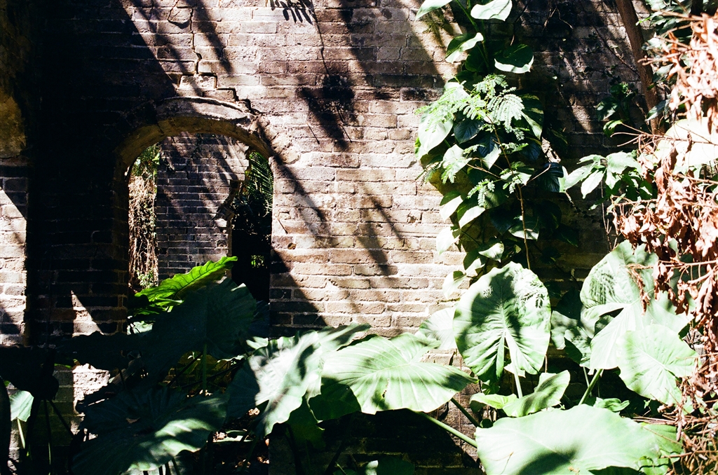 This photo shows the remains of the anchor for the stone crusher. The stone crusher turned the mined rocks into smaller pieces, with which the workers made the KCR bricks.