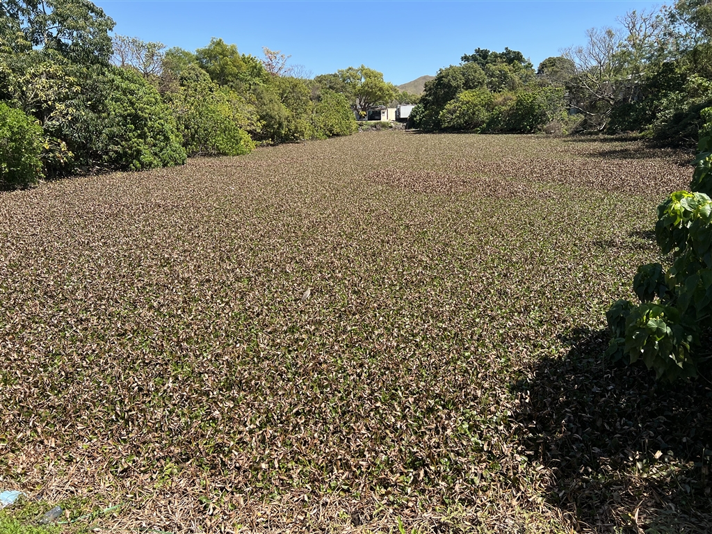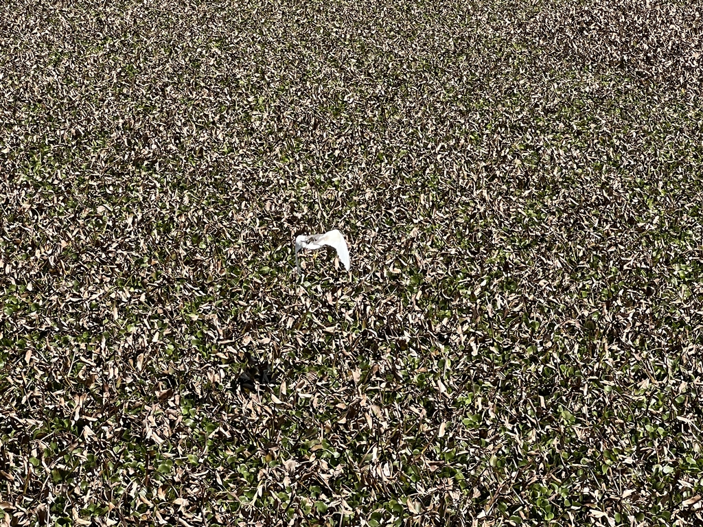 I took a leisurely walk and saw the two large ponds that give home to Pontederia crassipes. In May and October each year, this blooming species will turn the ponds into seas of violet. It is not yet time for blossom, but I did observe an egret happily resting amidst the dried bulbs, showing that this village habitat supports wildlife.