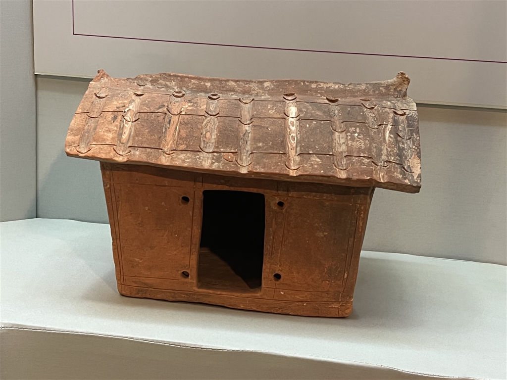 I was particularly intrigued by the clay models of houses, granaries and wells.  One stove model, two house models, two granary models and two well models were amongst the funerary objects at the tomb.  The house models have wonderful details that show thoughtfulness and craftsmanship.  I loved the figurines in the models.  One is holding a child, and the other one is pounding rice.