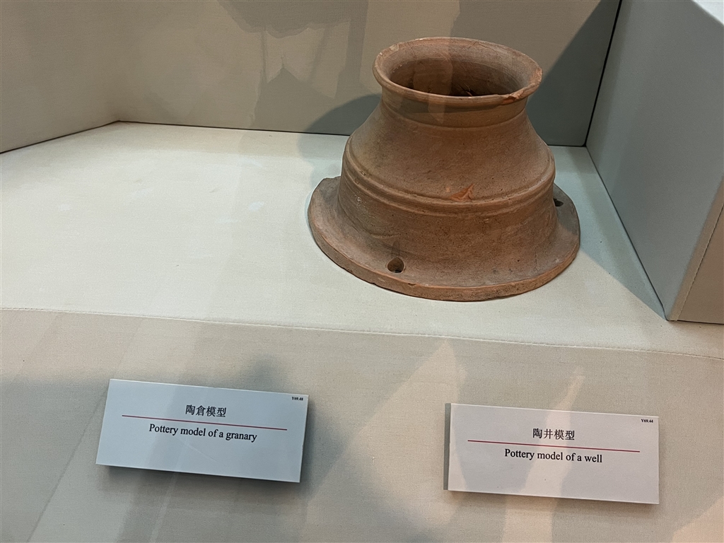 (Middle) A pottery model of a well; (Right) A pottery model of a granary.