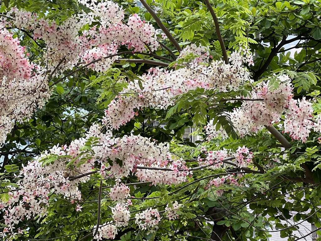 It is approaching summertime now, but the spring of 2022 was a heavenly time for the photographers of Hong Kong. Fellow bloggers have taken wonderful photos of the spring blossom all over Hong Kong. In late April, my friend and I visited the Cherry Street Park for a view of the blooming trees.