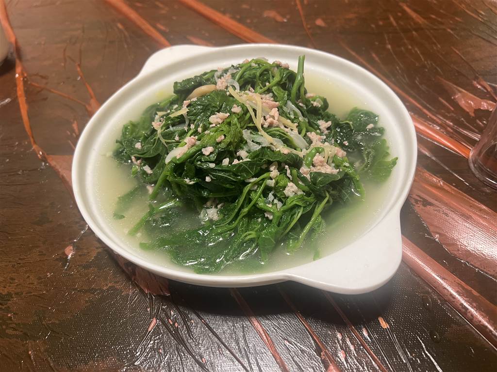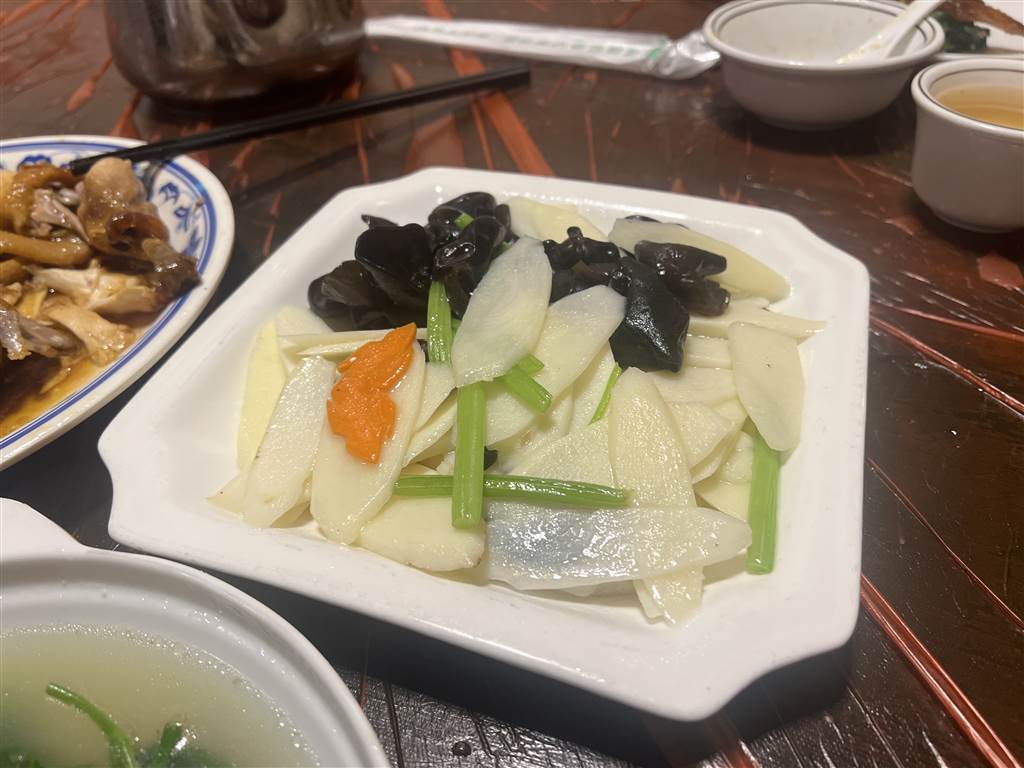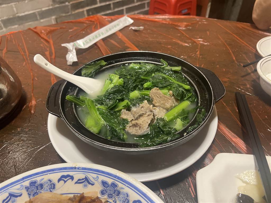 Like so many ancient cities in Shenzhen, Hakka cuisine is also featured in the Dapeng Fortress. We sat down at the very elaborate Peng Cheng Fan Guan (Peng Cheng Restaurant). There is a large dining space in different sections. The building should be a heritage building itself, but very well-restored. We ordered the traditional yao chicken, which is a baked chicken, and some veggies to go with. The food was fair.