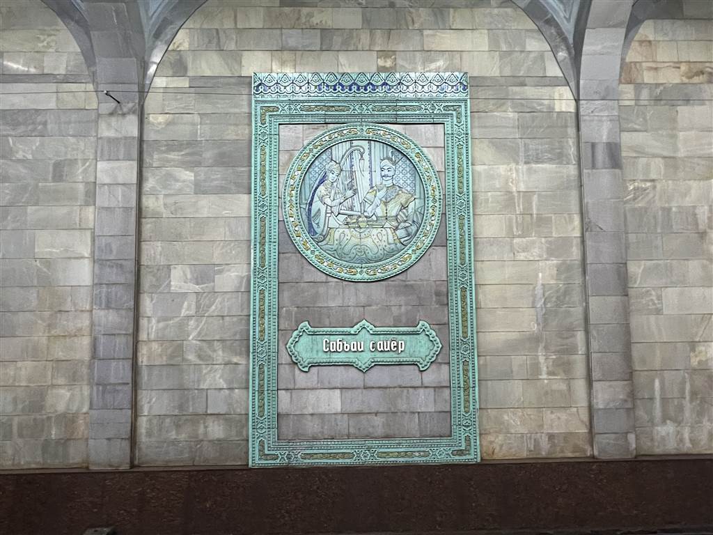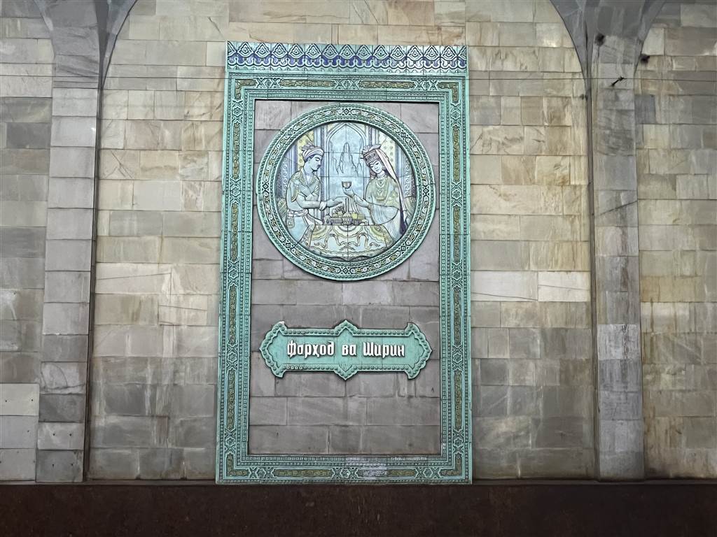 In the station, the bas reliefs depict scenes in one of Navoi’s literary works, Khamsa. They are five of the writer’s epic poems in Turkic. The sculptor Ahmet Shaymuradov spent four years creating these bas reliefs.