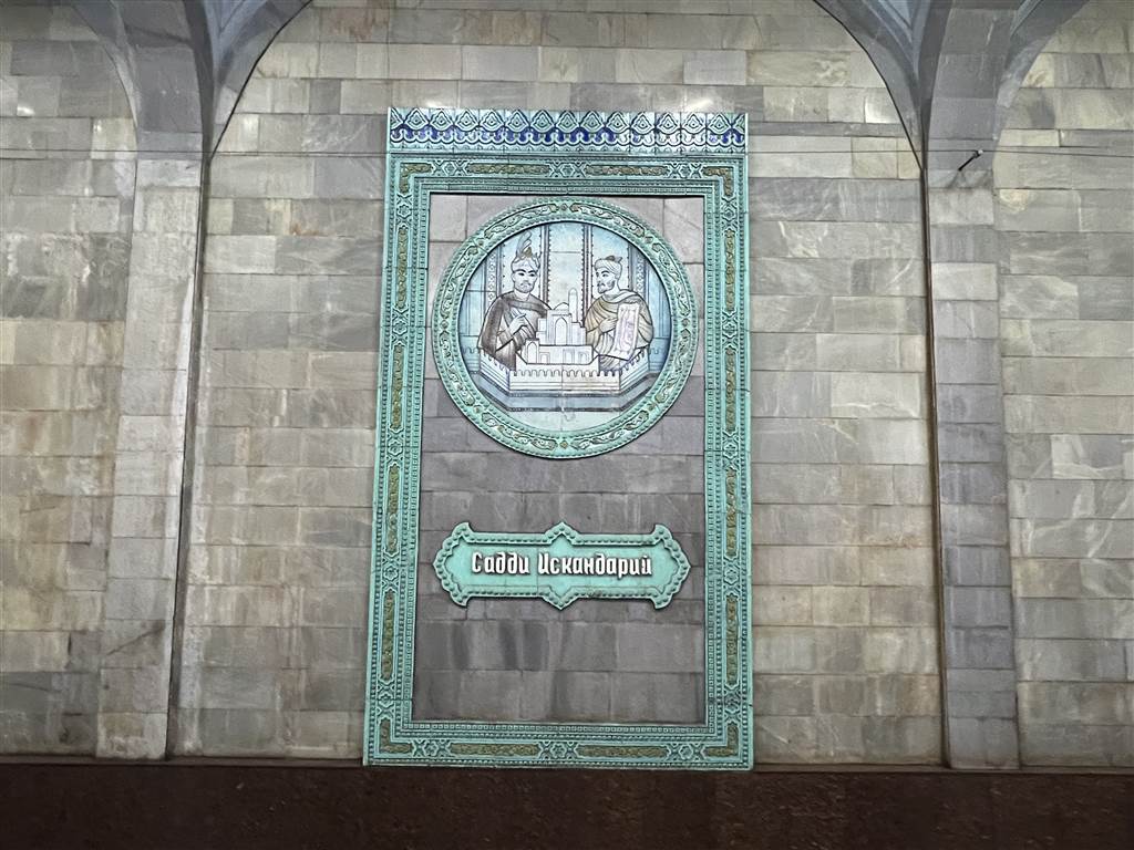 The Gafur Gulom metro station is named after Uzbek writer Gafur Gulom. During the Soviet times, he was Uzbekistan SSR’s National Poet. The artist behind the stately columns in the station is S. Sultonmuradov. The artwork on the walls are very interesting, perhaps almost in the veins of the futuristic.