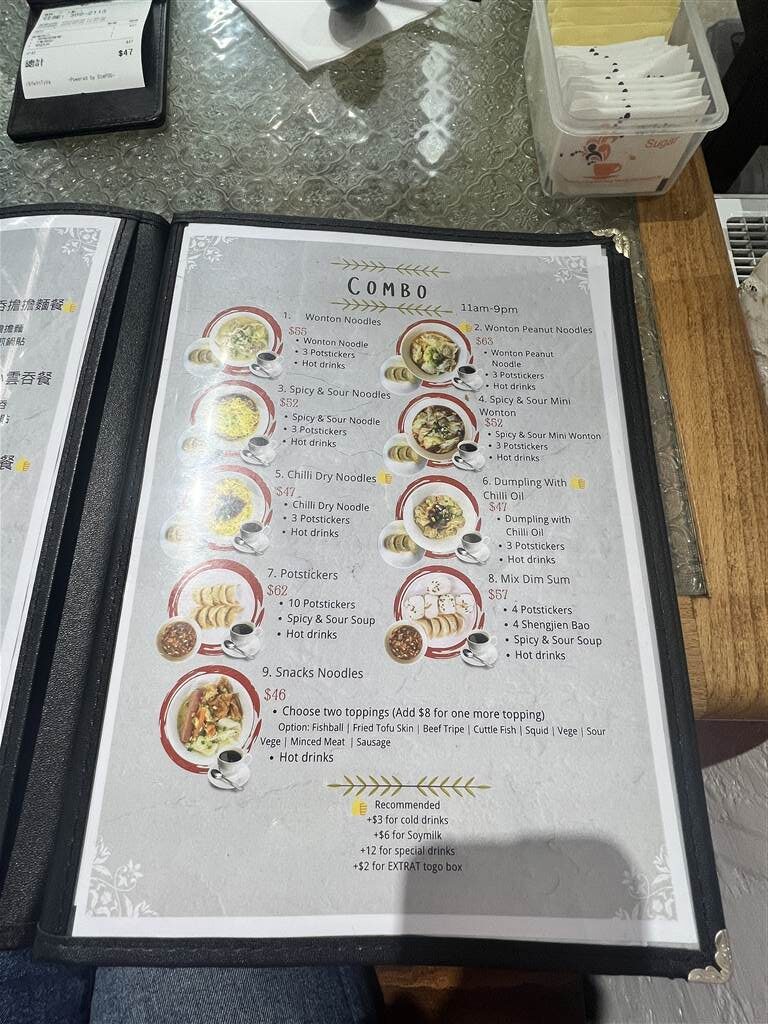 There are set menus at Mak Kee Yummy Food. These set menus usually come with a main dish (noodles) and a side dish of potstickers. I picked set No. 5 on this day and had a wonderful mala meat sauce noodle with three pot stickers. The milk tea, which also comes with the set, was the perfect conclusion to the meal.