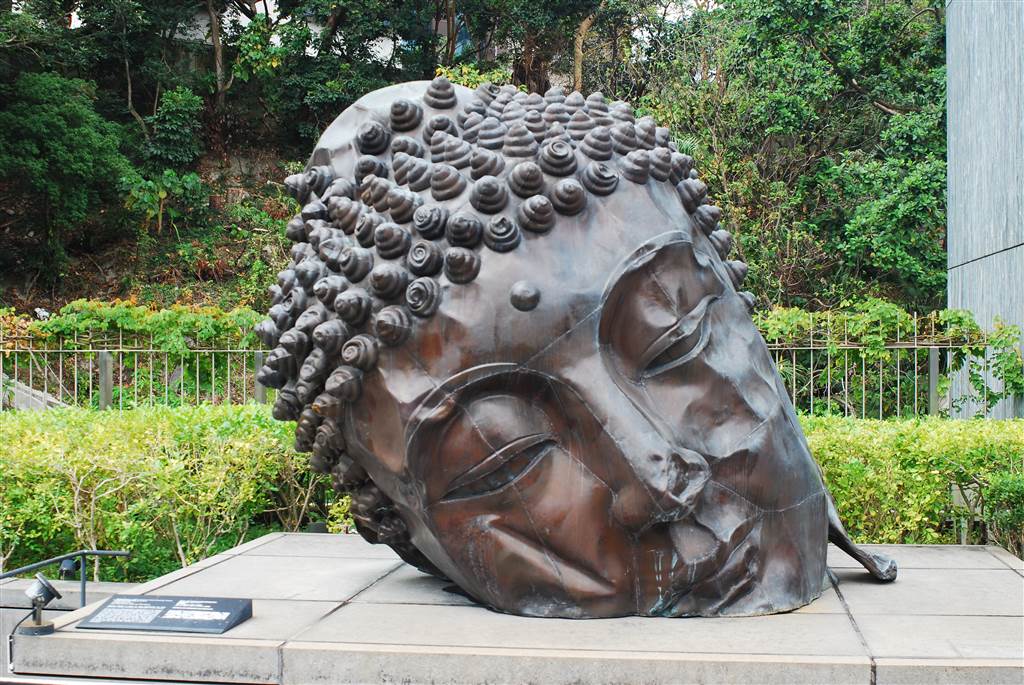 There are a few pieces of artwork in the Joseph and Josephine Lau Roof Garden, which is meant to be a zen garden and a place of respite within Hong Kong’s urban landscape. Artist Zhang Huan derived his inspiration for the copper and steel piece Long Island Buddha from a trip to Tibet. He observed the damages done to the buddha statues there and renewed his thinking about the Cultural Revolution. Therefore on this artwork some sections show intentional dents and damages as an artistic message.