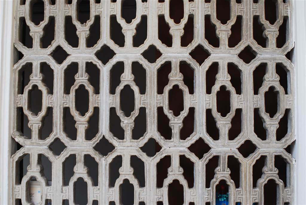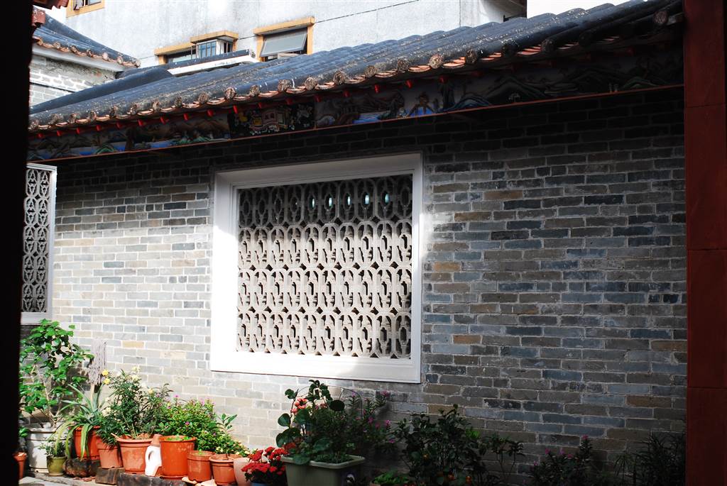 The villager there told me that the internal eaves columns made of red sandstone was the single most precious structure in the Hau Mei Fung Ancestral Hall. They were very expensive during the time that the hall was built. The lattice window on the side chambers show the auspicious patterns of ancient Chinese copper cash made in porcelain. This restored feature was the work of Beijing craftsmen, as I was told.