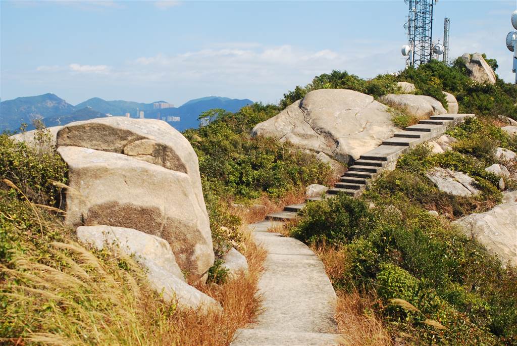 After reaching the peak of Ling Kok Shan, you will arrive at the transmitting station, where there is also a helicopter pad.