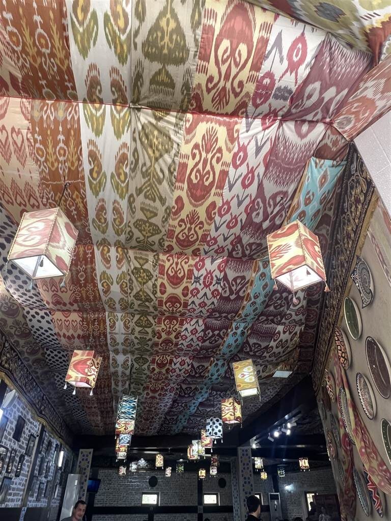 In this restaurant, the Uzbek-woven drapes were hanging from the ceiling instead of the walls (as opposed to the décor of the Silkroad Teahouse). The ambience was festive, modern and warm.