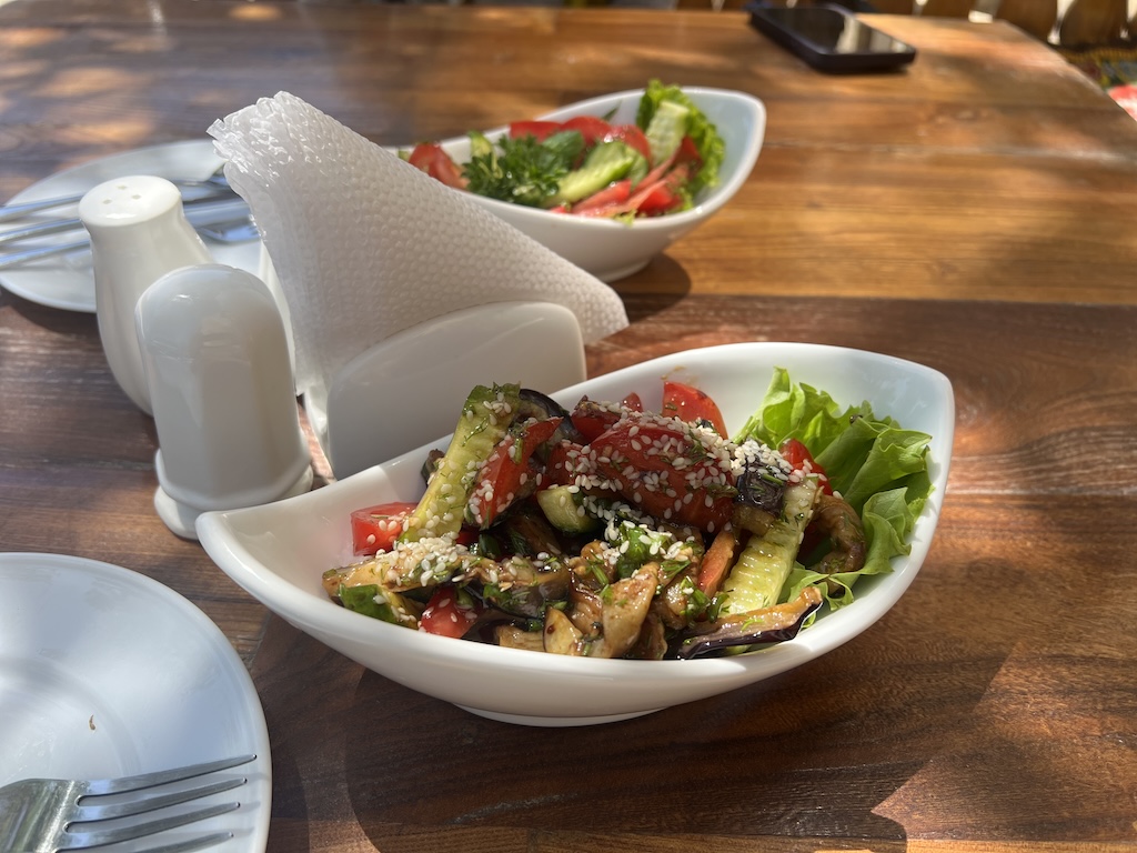 In the 1.5 days of touring in Khiva, I found all the meals that I had to be exceedingly pleasant. The Khiva Moon has a good reputation, and so my friend and I had our final lunch in Khiva there. It is located right outsides of the Ichon Qala city gate. I will let the pictures speak for themselves.